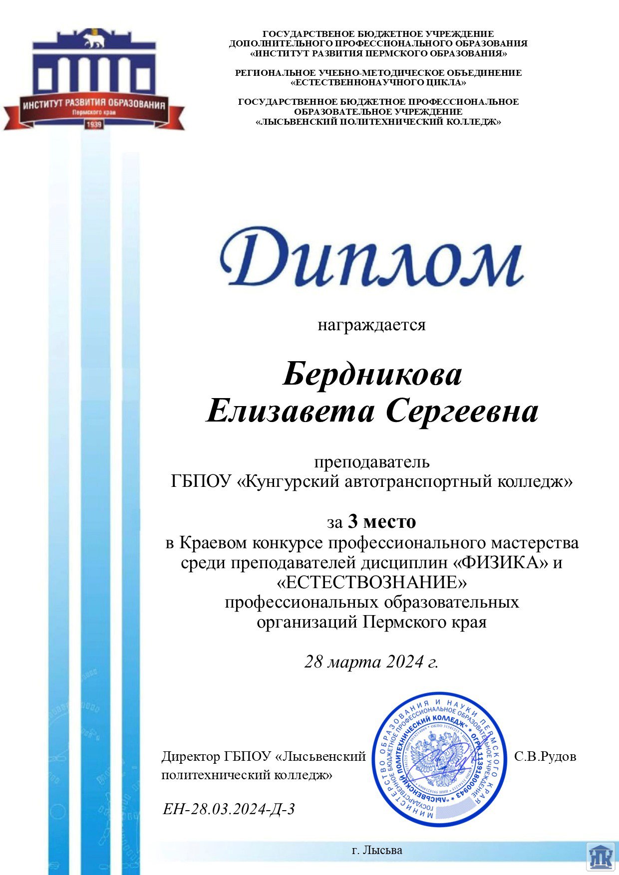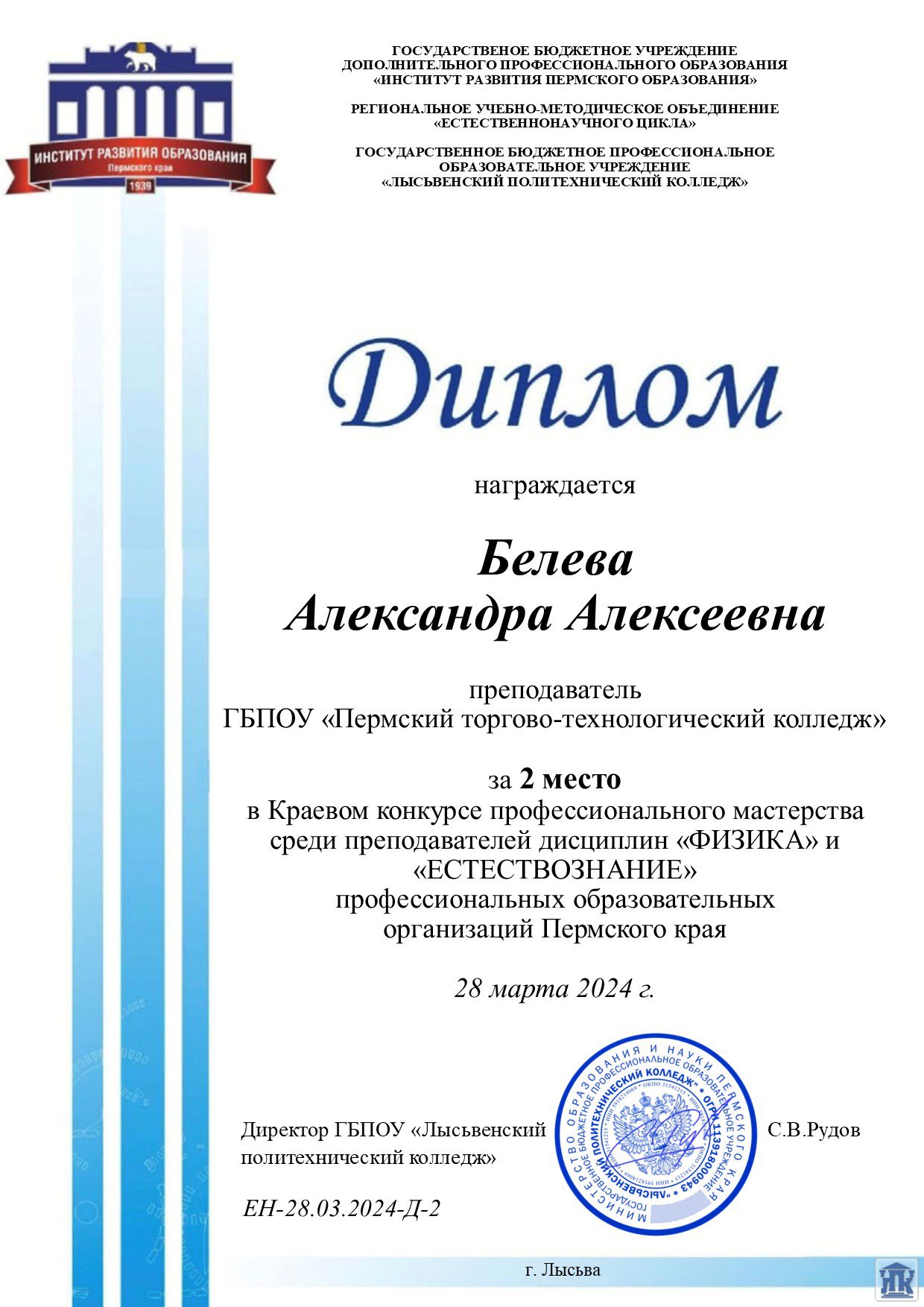 С 11 по 29 марта на базе ГБПОУ «Лысьвенский политехнический колледж» проходил Краевой конкурс профессионального мастерства среди преподавателей дисциплин «ФИЗИКА» и «ЕСТЕСТВОЗНАНИЕ» профессиональных образовательных организаций Пермского края.