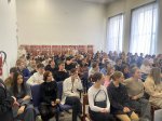 Студенты-экскурсоводы встречали гостей колледжа, провожали в актовый зал, где их приветствовала администрация колледжа в лице директора Рудова Сергея Владимировича и заместителя директора Зернина Александра Николаевича. После приветствия школьники стали участниками учебного модуля «Поехали!».