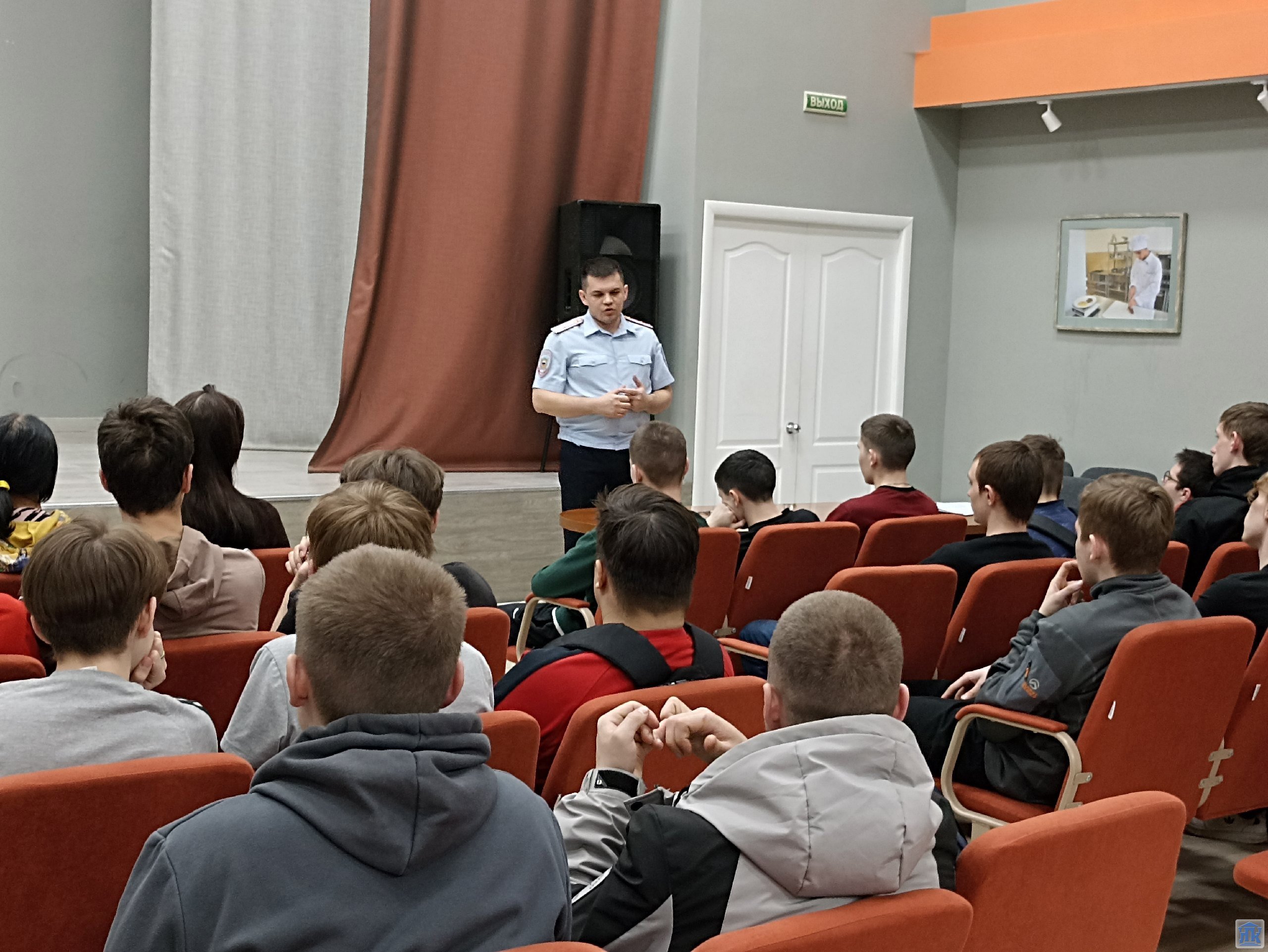 В рамках акции «Чистое поколение – 2024» для студентов колледжа состоялась встреча со старшим оперуполномоченным ОКОН ОМВД России по ЛГО майором полиции Снегирёвым А.Ю.