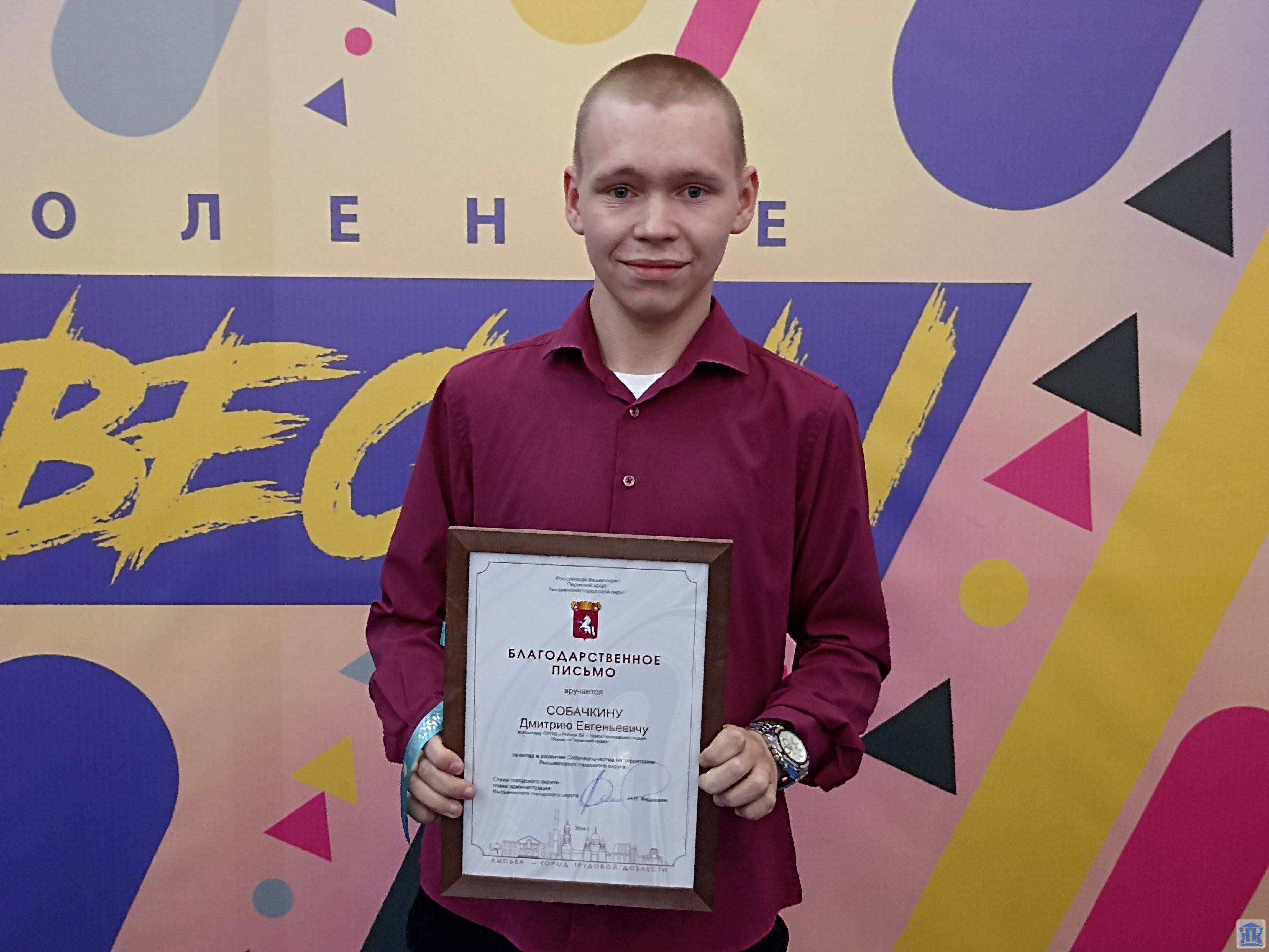 Поздравляем Собачкина Дмитрия, студента 1 курса Лысьвенского политехнического колледжа, который награждён благодарственным письмом главы Лысьвенского городского округа как волонтёр поискового отряда «Регион59-поиск пропавших людей», Пермь и Пермский край, за вклад в развитие добровольчества на территории Лысьвенского городского округа.