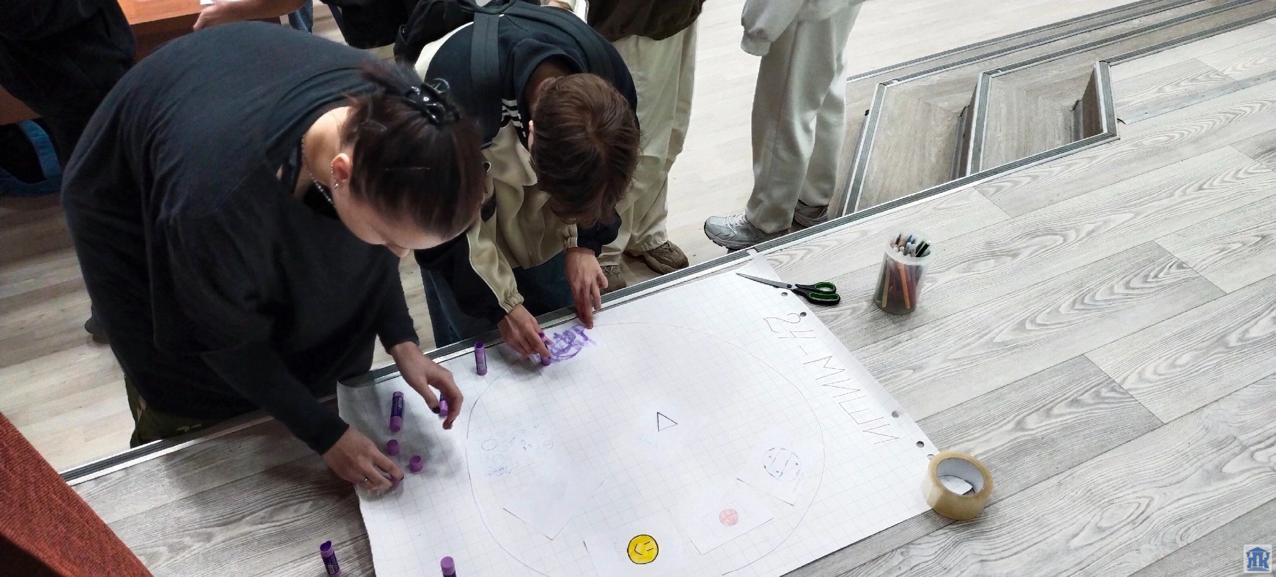 При участии педагога-психолога ребята знакомятся друг с другом. Работая в парах, берут интервью у товарищей, а после – знакомят группу со своим напарником. В финале занятия вместе создают общий герб группы.