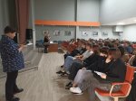 Из рассказа Светланы Ивановны Ивановой и Оксаны Ивановны Елоховой, библиотекарей отдела обслуживания Центральной библиотеки, студенты узнали о судьбе поэтов-фронтовиков – блестящей плеяды талантливых литераторов фронтового поколения, среди которых Сергей Орлов, Константин Симонов, Александр Твардовский, Булат Окуджава, Юлия Друнина.