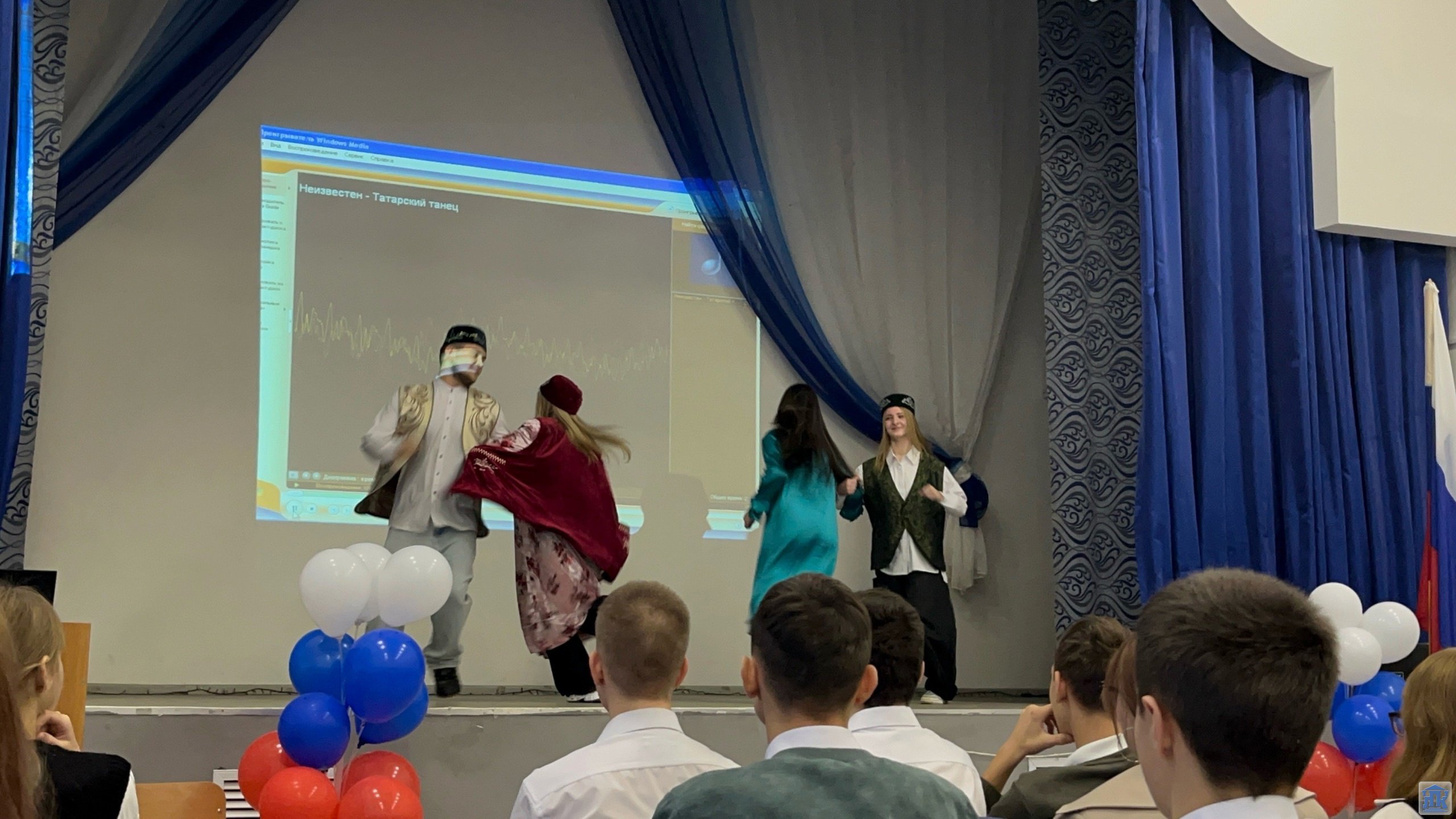 Студенты группы 23-23-ПМ рассказали о традициях и обычаях народов, проживающих на территории России: русских, татар, коми-пермяков. Вокальный ансамбль «Сударушка» порадовал своим исполнением прекрасных песен, а Нахия Каметова исполнила песню на старинном татарском инструменте курай, которому более 100 лет!