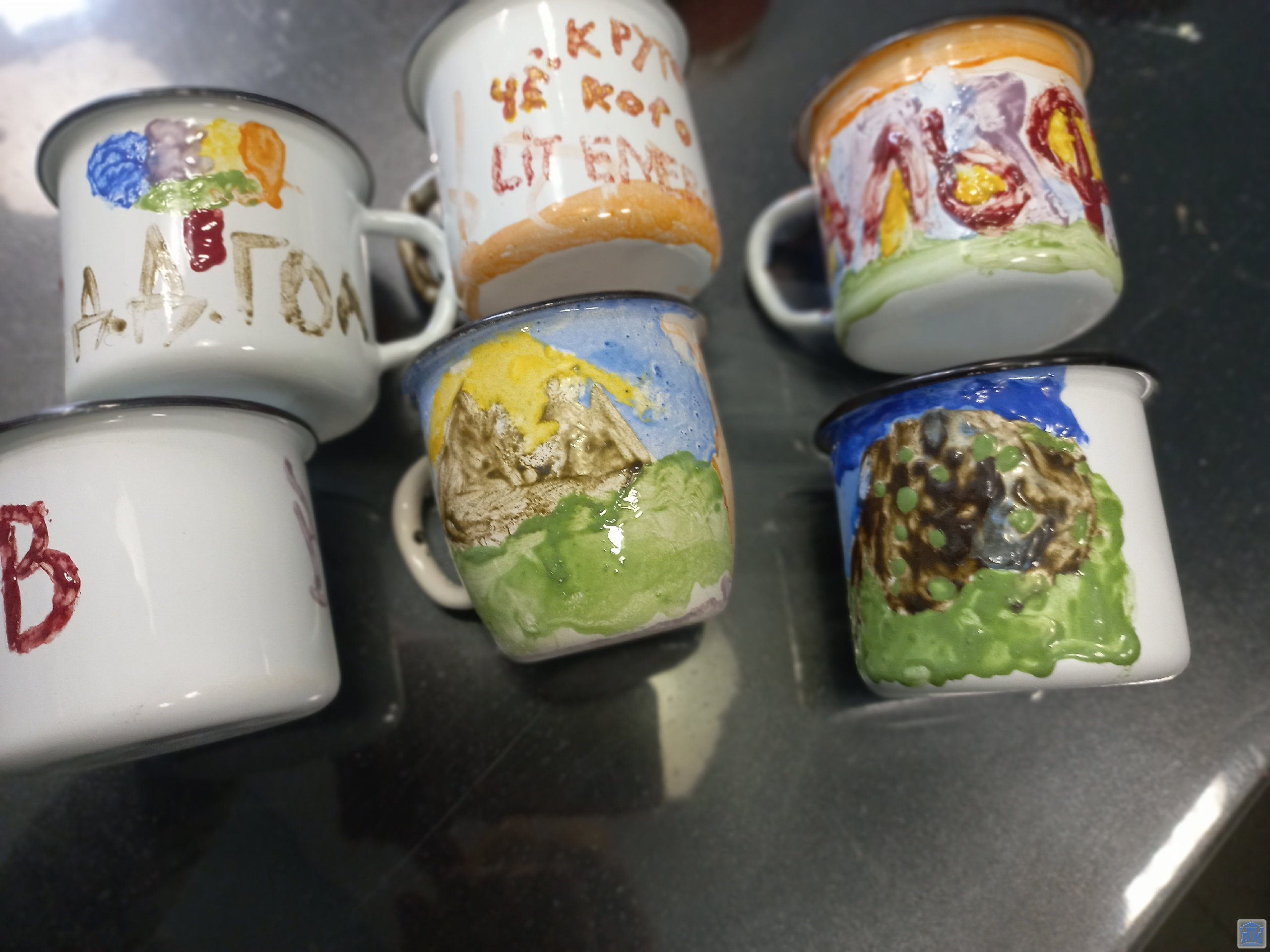 Студенты проявили свои творческие способности в художественном оформлении кружки. На кружках появились Уральские горы, рисунки Пермского звериного стиля и зашифрованные надписи. Все очень увлеклись работой с эмалями, и после обжига в муфельной печи студенческие шедевры появились во всей красе!