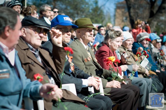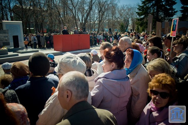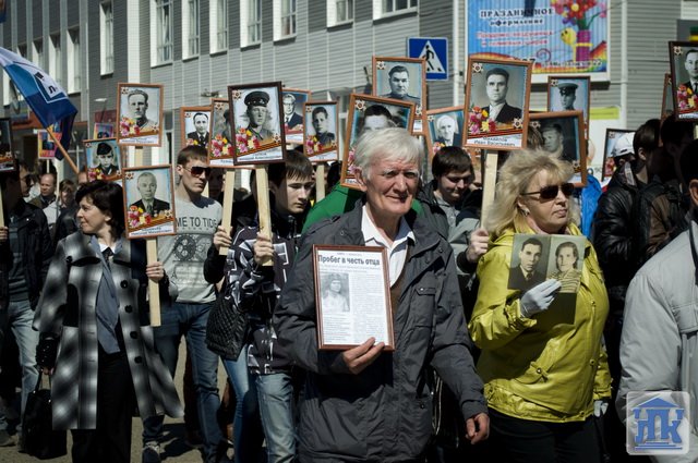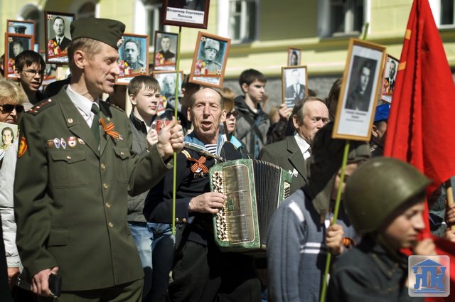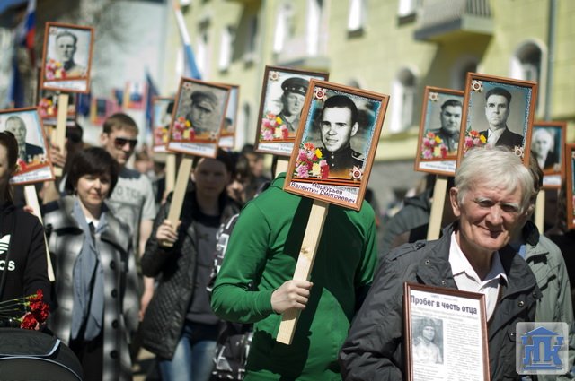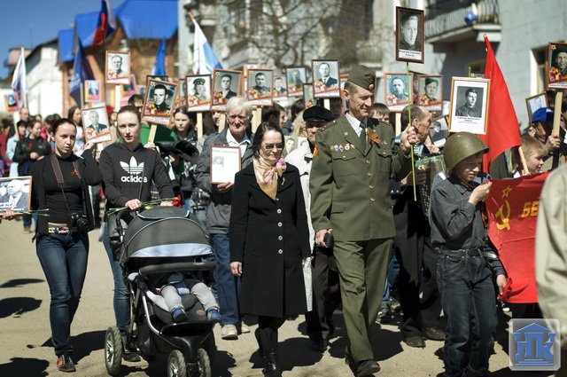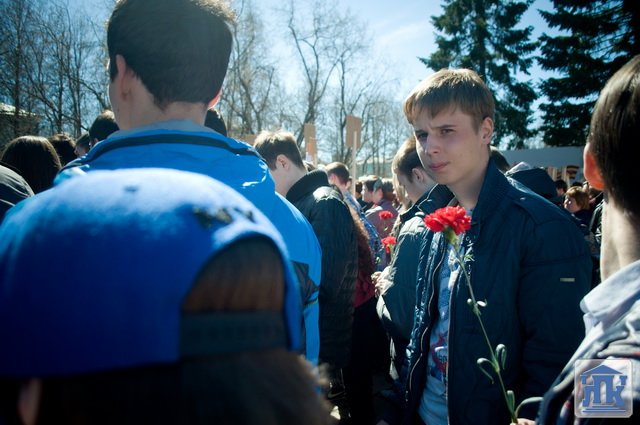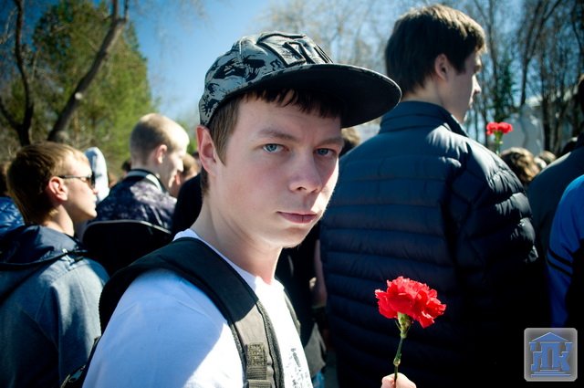 Студенты группы 38-ВТ в городском шествии несли портреты ветеранов Великой Отечественной войны. В конце митинга студенты и преподаватели возложили красные гвоздики к монументу Славы.