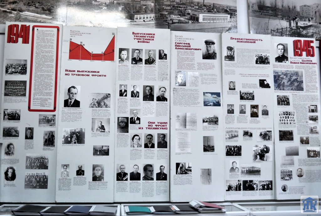 К 30-летию Победы была организована группа «Поиск», проведена огромная работа, собрано много материала, велась обширная переписка с выпускниками разных лет. Каждой группе студентов выделено 5 выпусков, нужно было выяснить судьбы выпускников. Материала собралось так много, что было принято решение организовать свой музей – в 1979 году 28 ноября он был торжественно открыт. Ленту разрезал первый заведующий техникума Бурмасов Петр Афанасьевич. Директором музея была назначена Хазанович Маргарита Генриховна, преподаватель истории и обществознания, которая 19 лет руководила им.