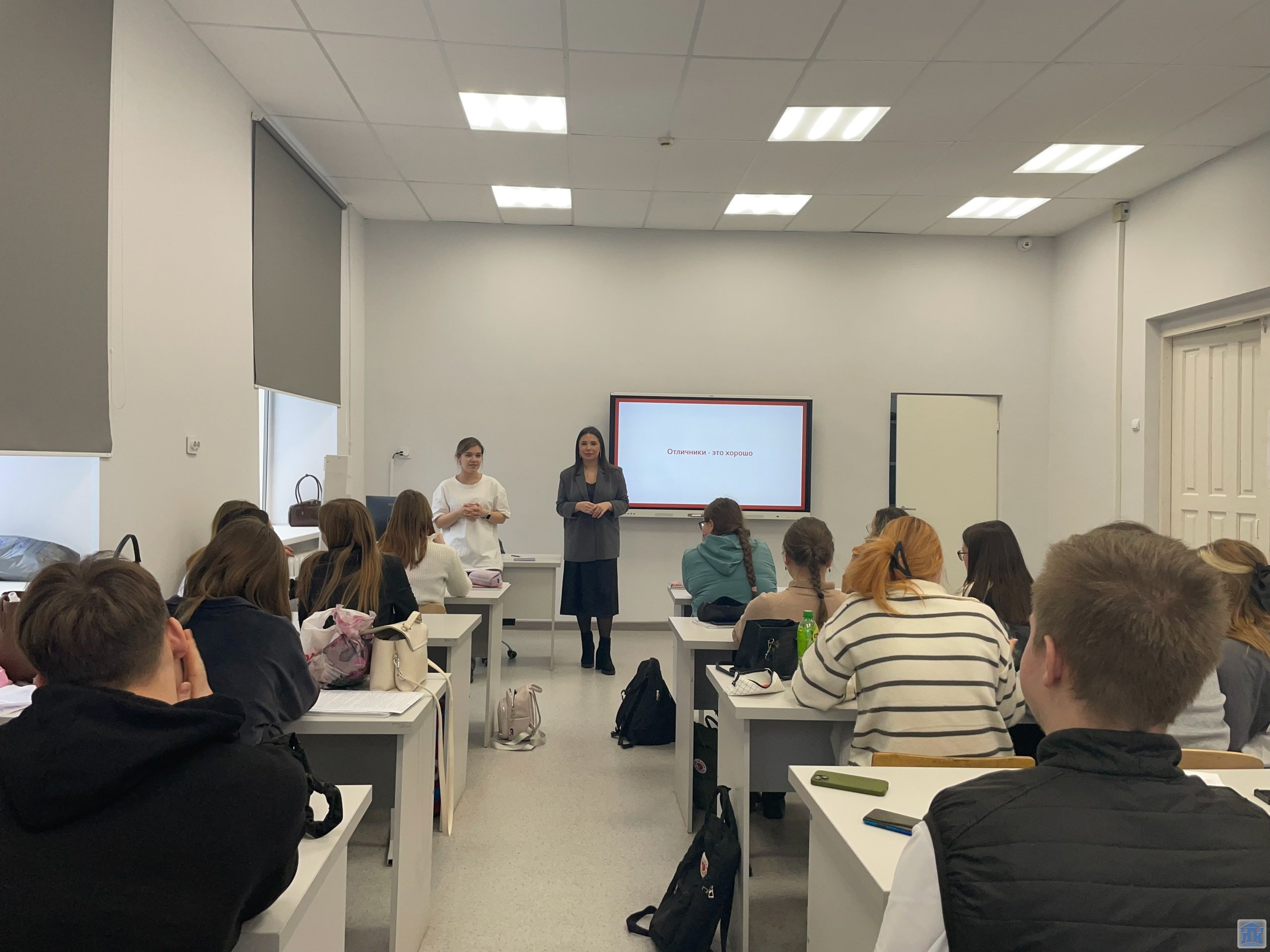 24 декабря со студентами третьего курса специальности "Управление качеством продукции, процессов и услуг (по отраслям)" прошла встреча в рамках цикла встреч дискуссионного клуба «Терки». Поговорили о профилактике правонарушений, об образовании и карьере, кроме того затронули и другие важные для молодежи темы, такие как любовь и дружба.