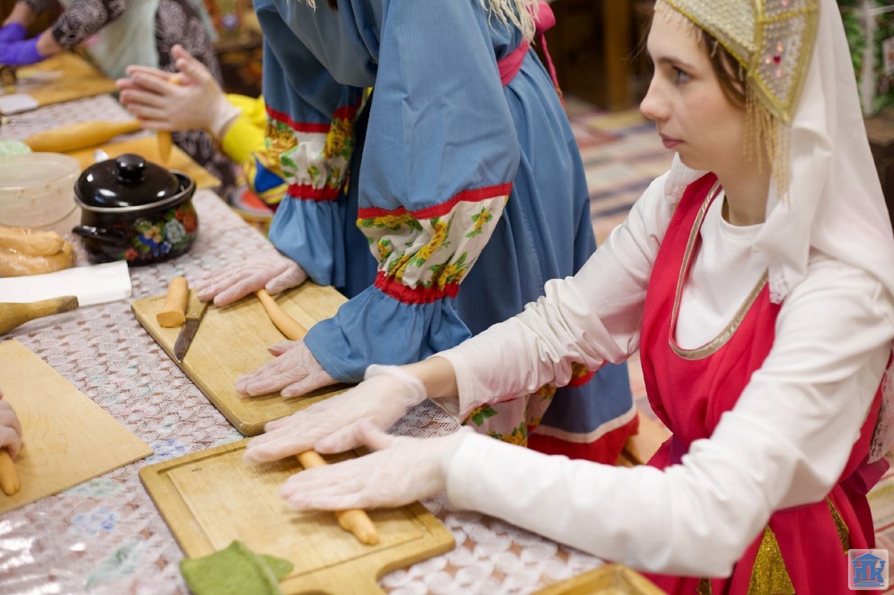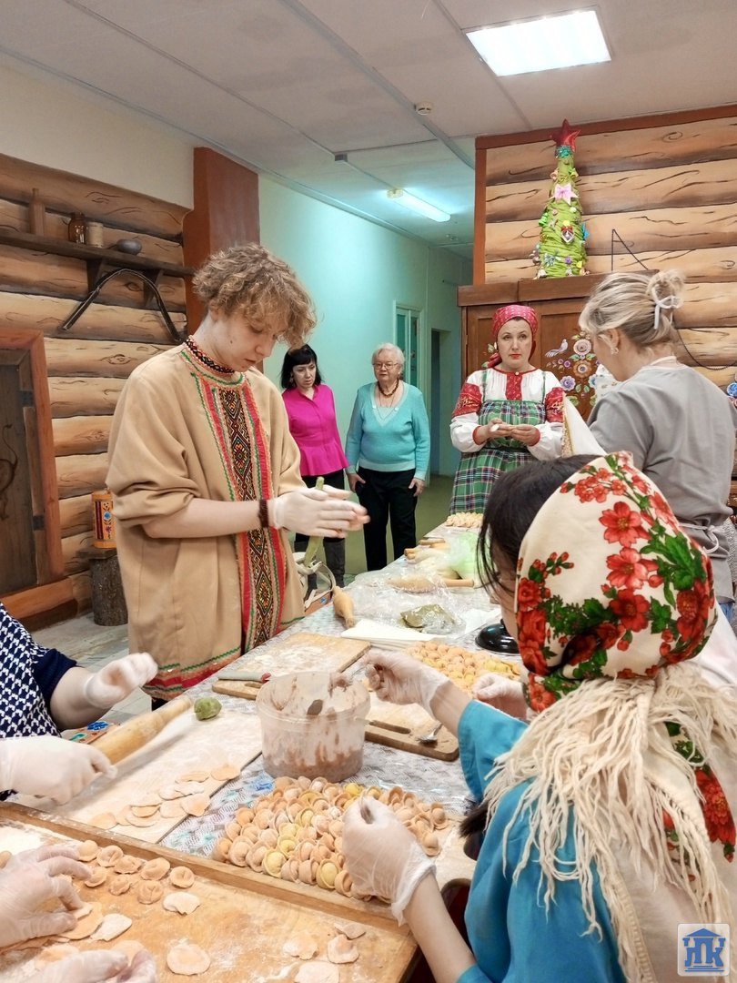 Сочельник – сочни, ушки, пермские казули, пироги и шаньги, изделия из теста – вот основа праздничного святочного стола. В них была заложена и сакральная сила обрядов, гаданий и традиций. Поэтому на интерактивной площадке «Русская изба» студенты колледжа были главными участниками и устроили настоящий пельменный переполох.