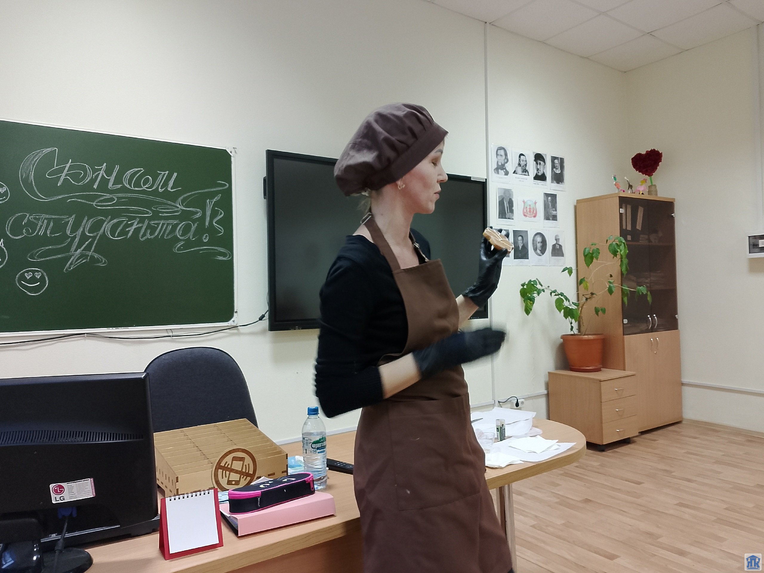 24 ноября в рамках празднования Дня студента преподаватели поменялись местами со студентами. В расписании появилась новая группа – 95-ЛПК. Вторым уроком стоял урок технологии, в рамках которого состоялся необычный и яркий мастер-класс по росписи пряников цветной глазурью, который проводила талантливый мастер Лариса Мазитова.
