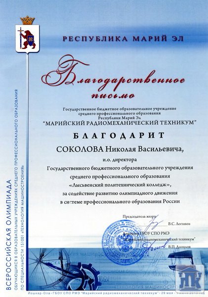 C 29 мая по 1 июня в городе Йошкар-Ола (Республика Марий Эл) проходила Всероссийская олимпиада профессионального мастерства среди обучающихся в учреждениях среднего профессионального образования по специальности 151001 «Технология машиностроения».