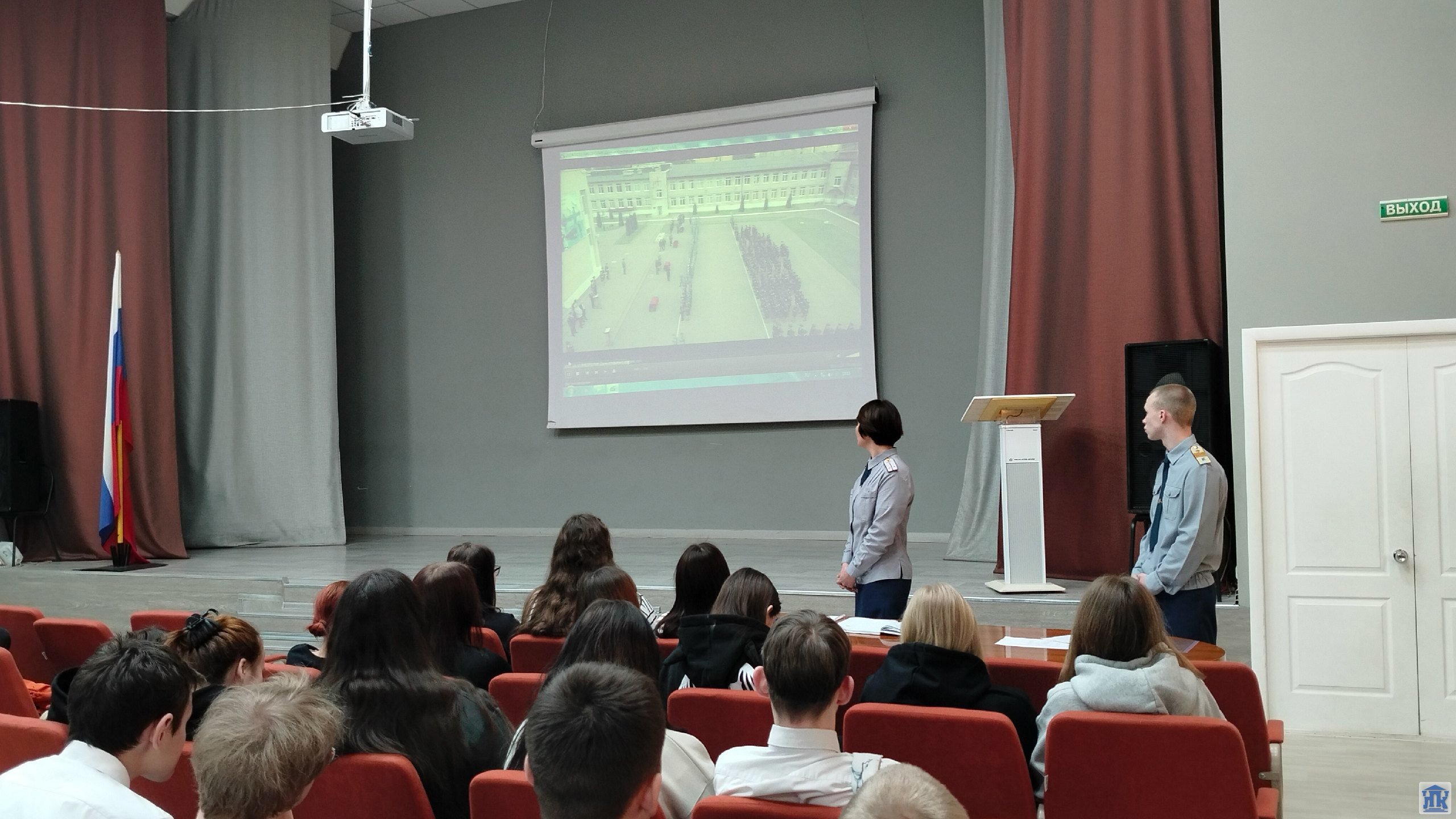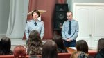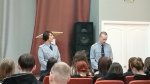 Александра Андреевна подробно рассказала об уголовной ответственности за совершенные преступления и правонарушения и ознакомила ребят со спецификой своей службы. Платон Олегович затронул тему профилактики терроризма и экстремизма и рассказал об университете, в котором учится, о возможности получении высшего образования по данному направлению и устройства на службу в ОМВД.