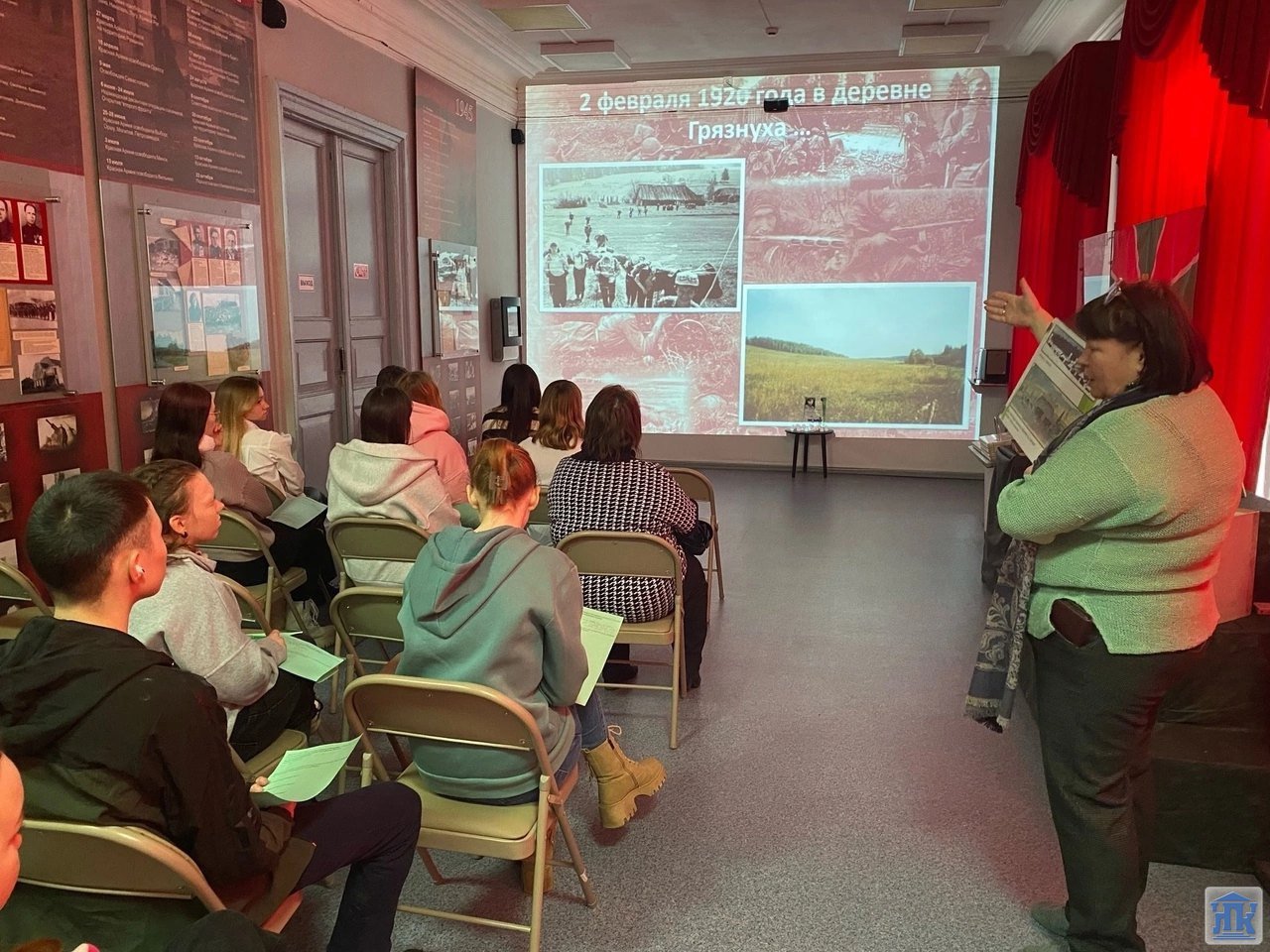 25 февраля студенты группы 309-22-ПВ посетили урок памяти и мужества в честь 105-летия со дня рождения нашего земляка, героя-пограничника Алексея Новикова в Муниципальном бюджетном учреждении культуры «Лысьвенский музей».