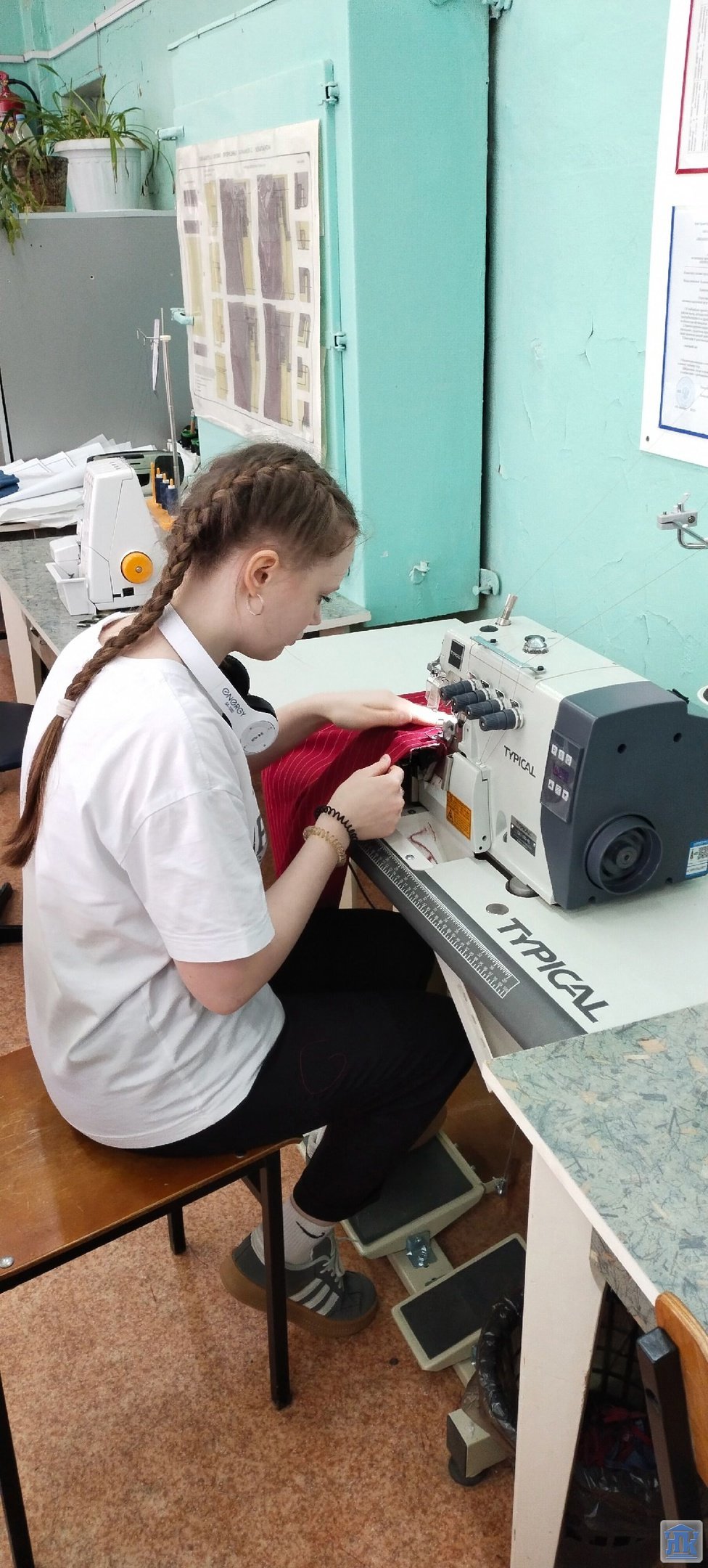 В компетенции «Портной» принимают участие студентка 1 курса Башкова Евгения и студентка 2 курса Косвинцева Елизавета. Вместе с наставником – Сахабутдиновой Ильгизой Кавыевной – девушки создают актуальную модель одежды, продумывают креативный элемент декора.