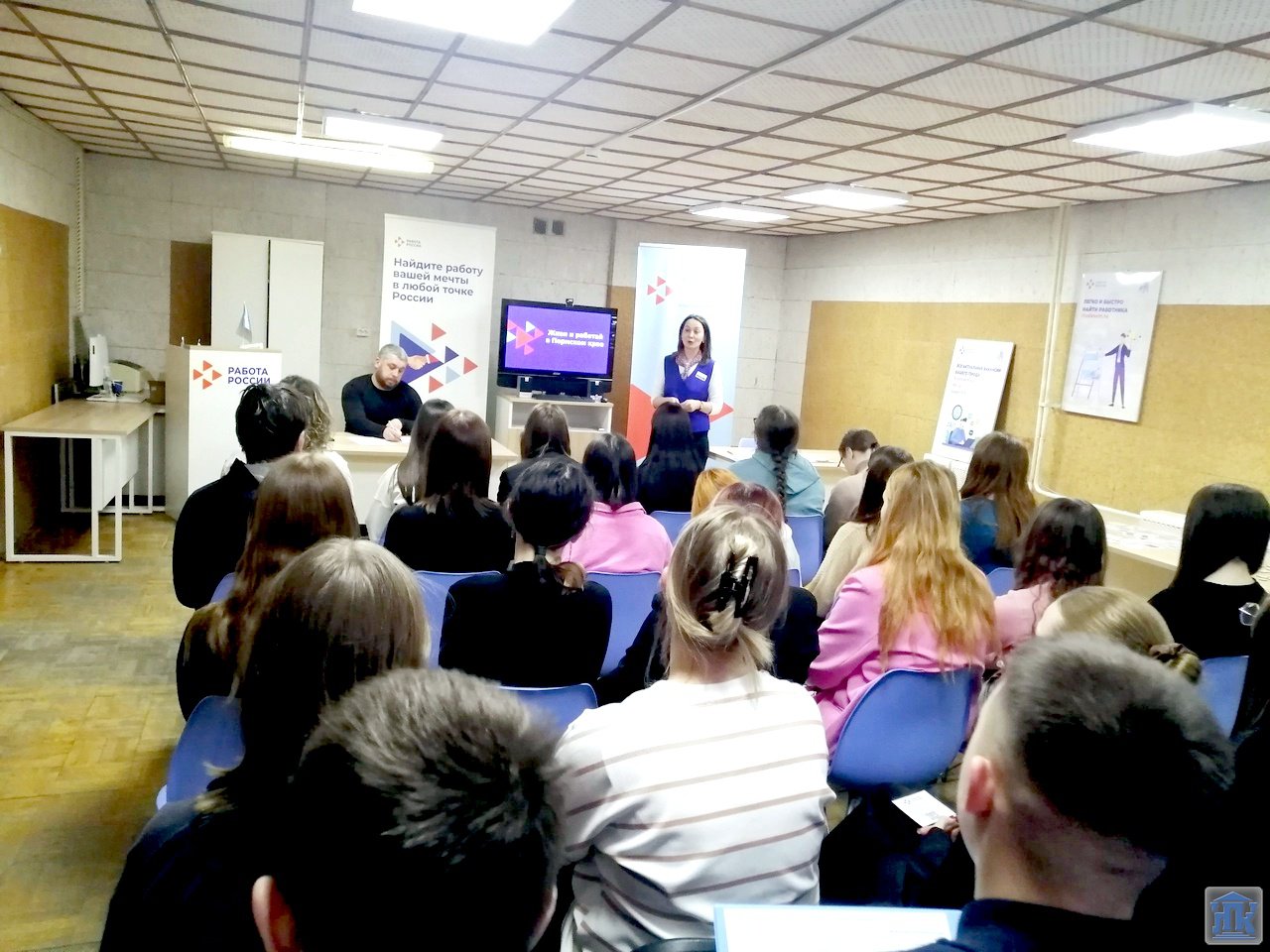 Представитель ЦЗН Останина Екатерина познакомила студентов с возможностями онлайн площадки «Работа России», рассказав о ее функционале и преимуществах в поиске работы.