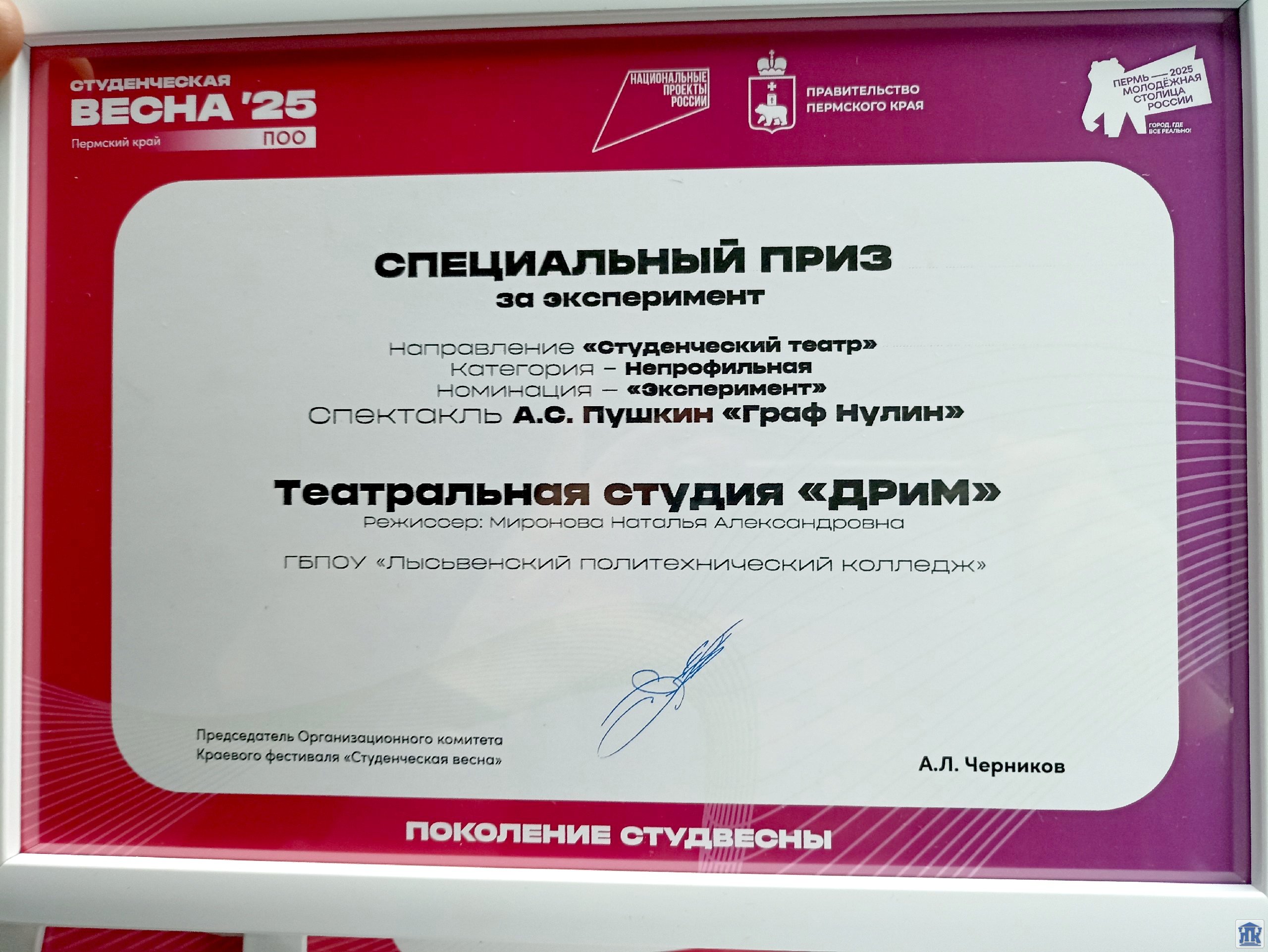 Талантливые артисты – студенты ЛПК Валиева Мария и Тихомиров Валериан – великолепно сыграли своих персонажей на «Студенческой весне – 2025», сделали своё выступление незабываемым. Результат – специальный приз жюри краевого конкурса за эксперимент. Молодцы, ребята!