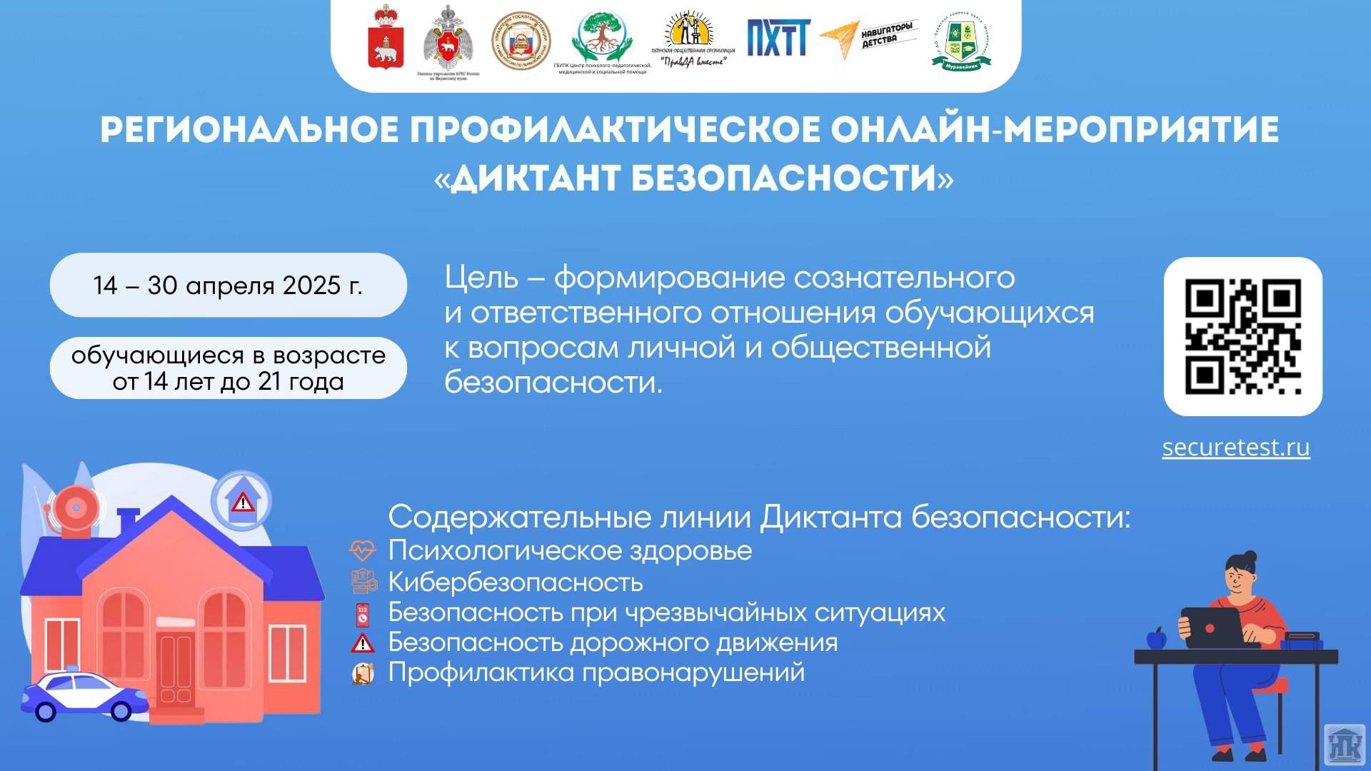 Диктант был организован в удобном онлайн-формате на специально созданном для этого сайте, что позволило обеспечить доступ к мероприятию всех желающих. Он включил в себя 30 вопросов, которые охватывают разнообразные темы, включая кибербезопасность, психологическое здоровье, профилактику правонарушений, безопасность на дорогах, а также действия в чрезвычайных ситуациях.