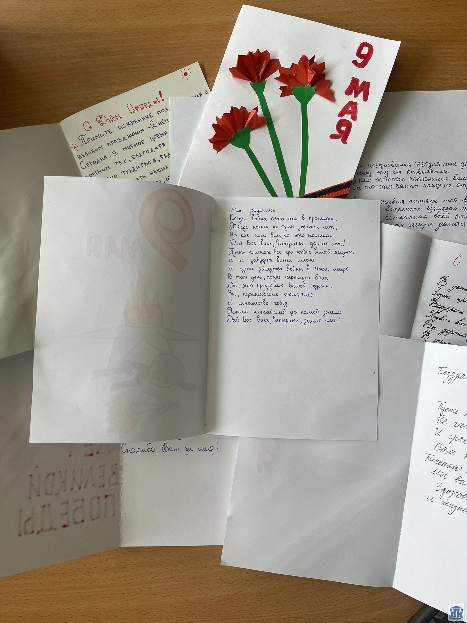 Под руководством советника директора по воспитанию и взаимодействию с детскими общественными объединениями Елисеевой Анны Витальевны, преподавателей Маковецкой Оксаны Владимировны, Дербеневой Елены Валентиновны, Михайловой Людмилы Аркадьевны студенты подготовили трогательные письма и открытки-поздравления для пожилых людей, проживающих в домах-интернатах. В своих посланиях юные «внуки» выразили слова благодарности и уважения всем, кто приближал этот великий день!