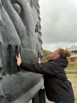 Татьяна Леонтьевна Колодкина рассказала про народы, проживающие на этой уникальной земле, про вагулов и ханты-манси, их традиции, обряды, культуру и пермский звериный стиль. Она разъяснила, что значит арт-объект "Медведь в жертвенной позе", и стоит ли давать ложные обещания, прикоснувшись к лапе медведя... Очень стоит хорошо подумать! Также мы вспомнили про историю железных караванов на реке Чусовой и современных сплавщиков.