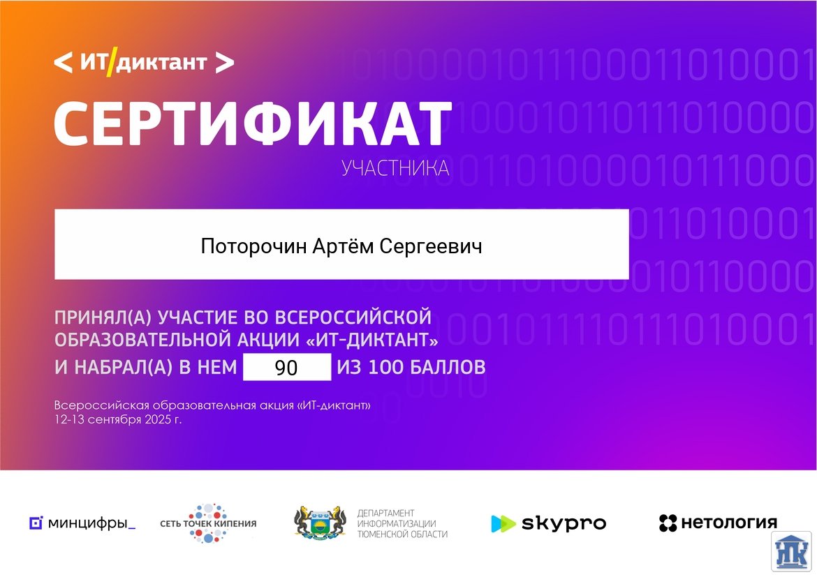 12, 13 сентября в группах первого и второго курсов прошел Всероссийский диктант по информационным технологиям «ИТ-диктант». Мероприятие приурочено ко Дню программиста в России: праздник ежегодно отмечается в 256-й день года.