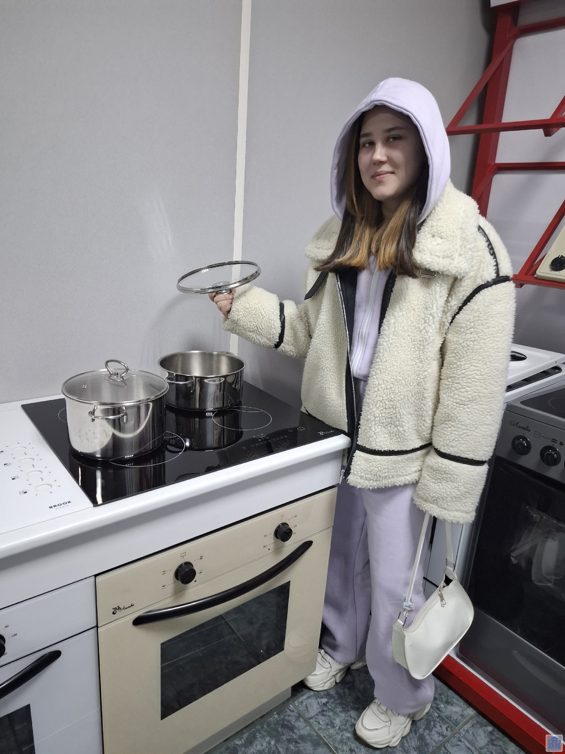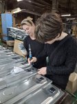 Производственный процесс изготовления бытовой техники студенты могли наблюдать в различных отделениях производства. Посетили штамповочное отделение, познакомились с современным оборудованием. На сварочном участке – с автоматизацией производства сварочных работ по жарочному шкафу. Отделение покраски, сушки деталей, сборочный конвейер – все интересно! И даже пробовали свои силы – как настоящие работники-штамповщики.