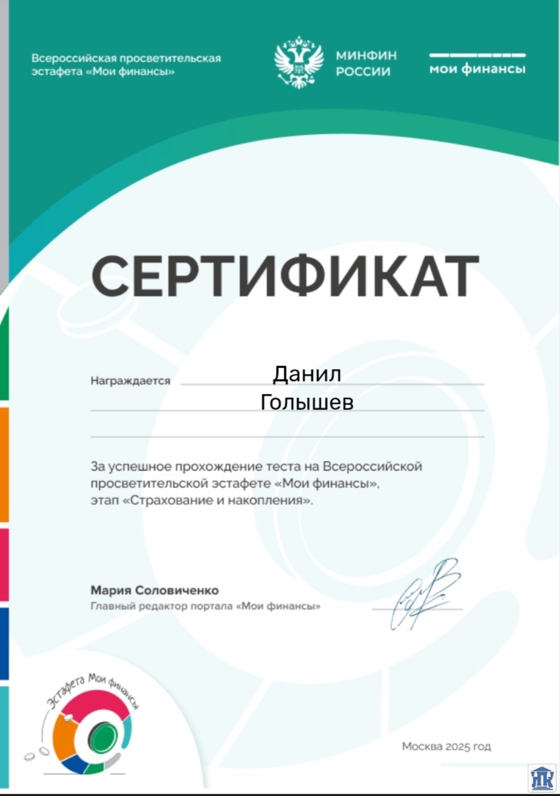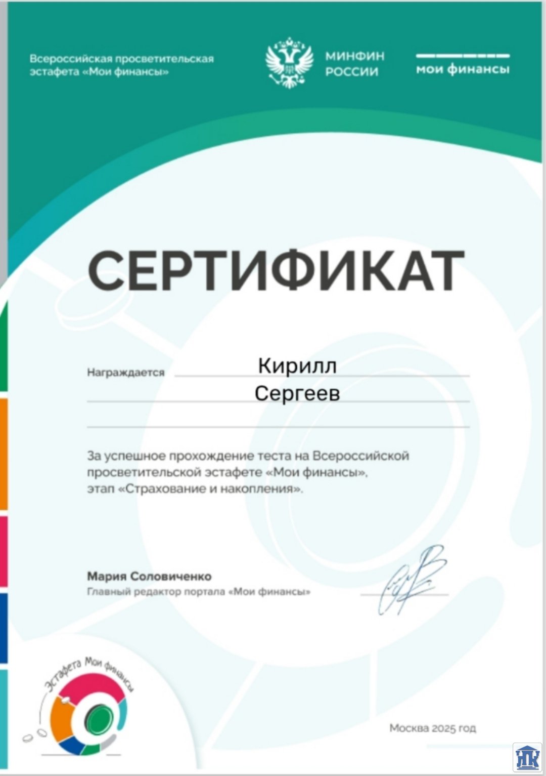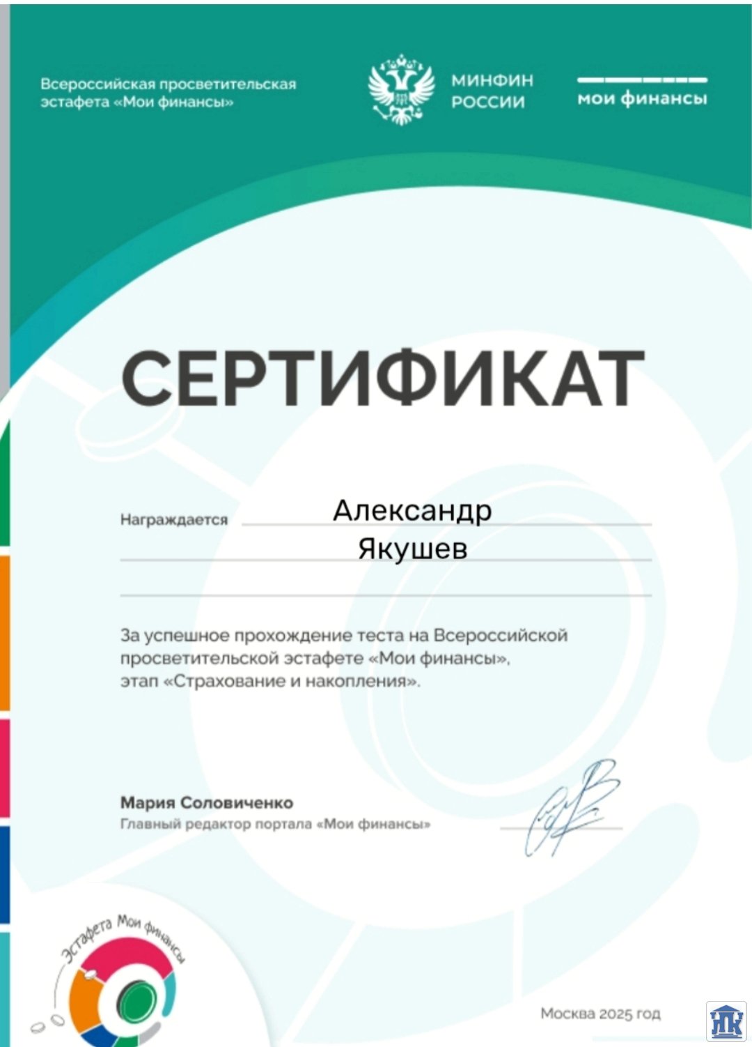 Студенты групп 42-22-ОМД, 24-МСДР приняли активное участие в мероприятии «Думай о будущем: страхование и накопления», которое проводилось в рамках VI этапа Всероссийской просветительской эстафеты «Мои финансы». Обучающиеся успешно прошли тест, продемонстрировав отличные знания в этой ключевой области!