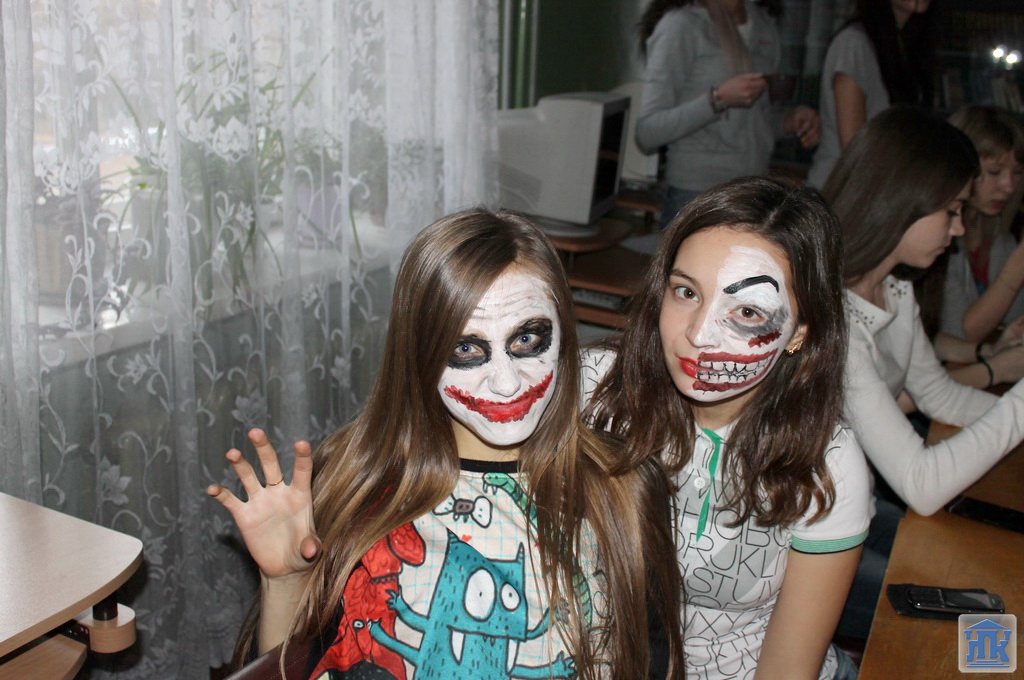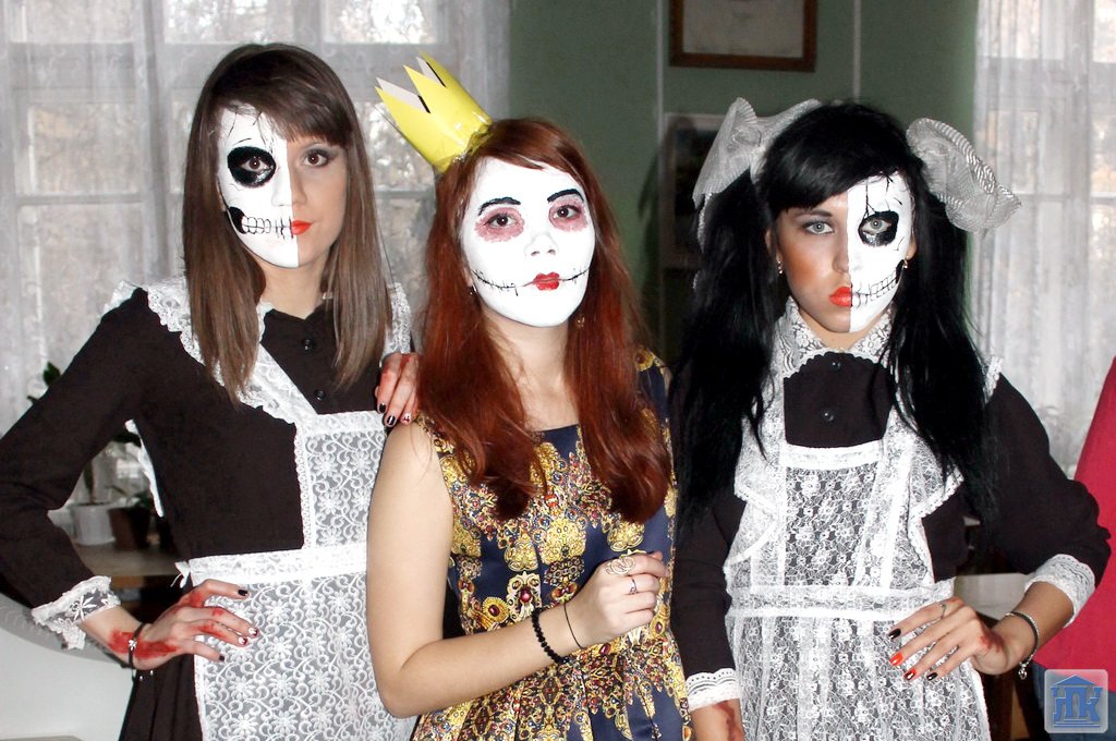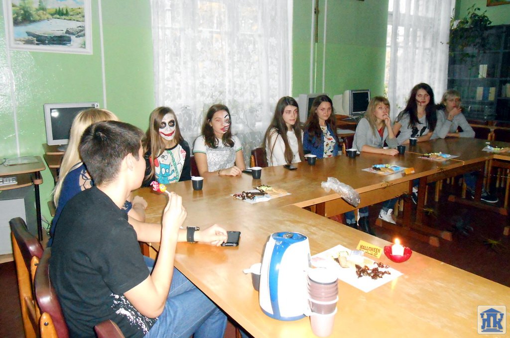 31 октября актив группы 47-УК приготовил сюрприз. Нарядившись в оригинальные костюмы и сделав особым образом макияж (особо ярко выделяются черным глаза и ярко-красные губы), пригласили группу для празднования Хэллоуина.