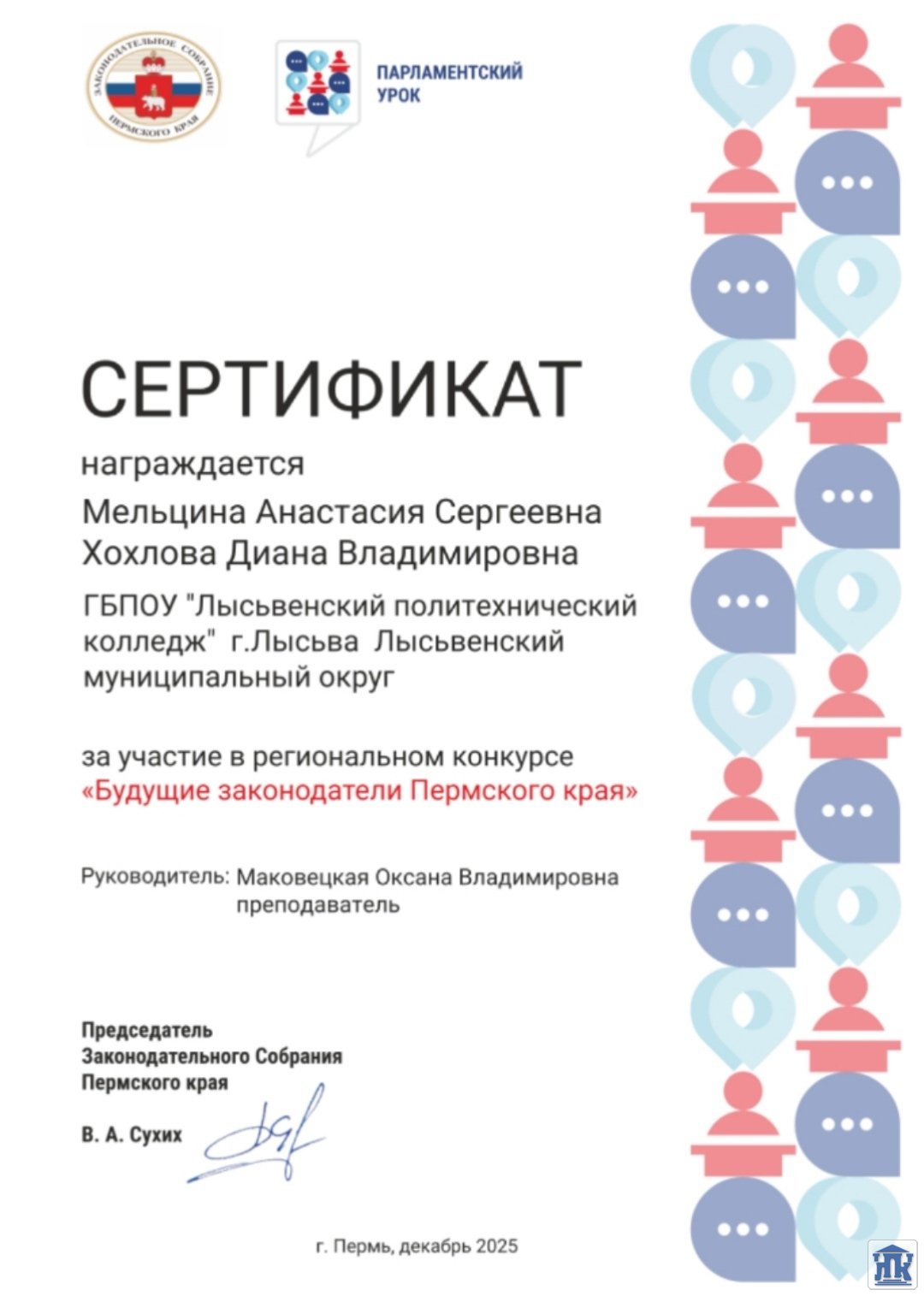 Особенно радует участие студентов колледжа в номинации «Видеофильм»! Они создали яркие видеоролики, где поделились своим видением родного Пермского края, подняли актуальные проблемы и предложили креативные идеи для развития территорий. Среди тем — инклюзивное образование, экологические вызовы и благоустройство города. Работы ребят полны вдохновляющих идей, которые могут стать началом настоящих перемен! Участники получили заслуженные сертификаты за свой вклад.
