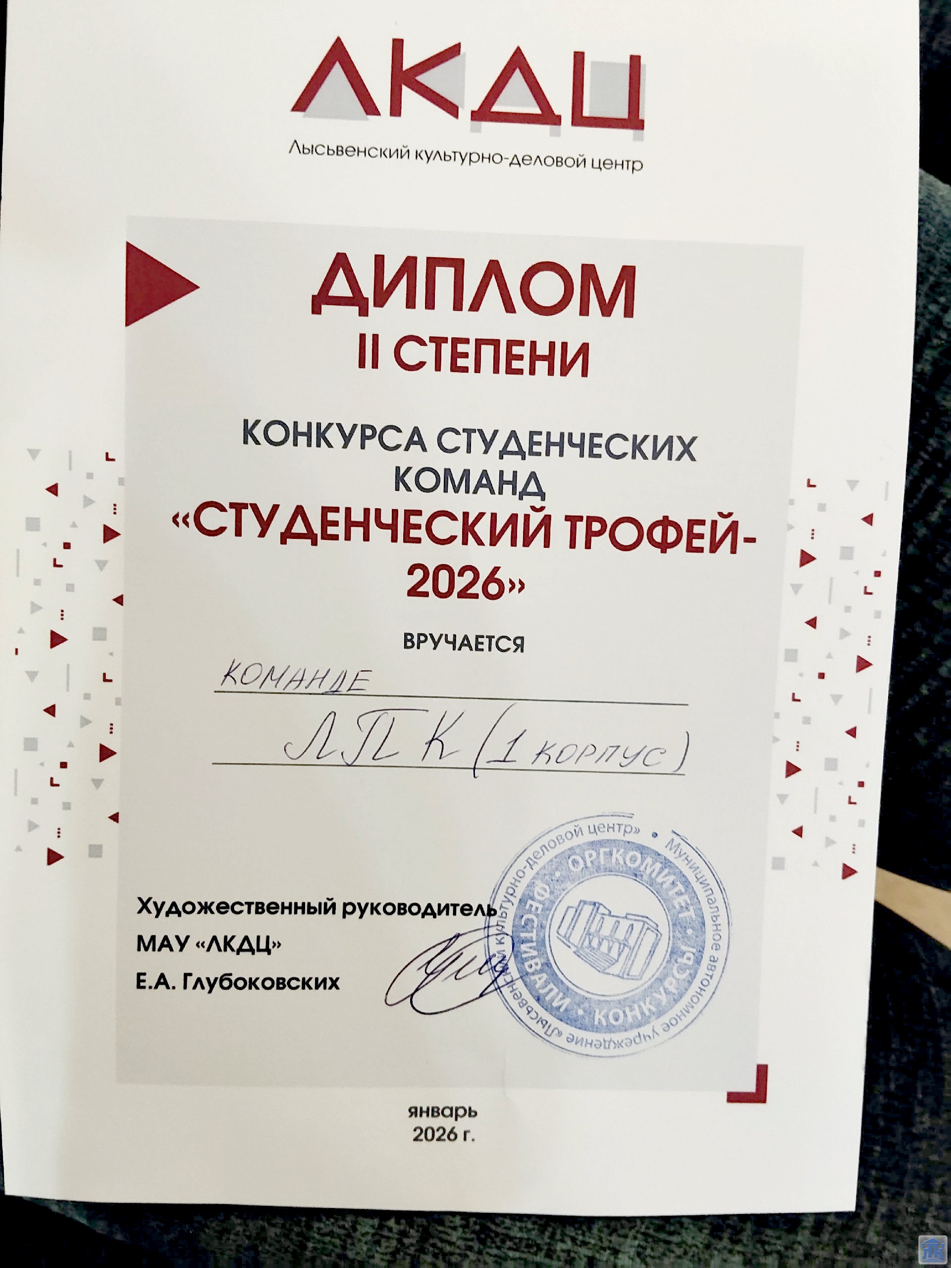 Накануне Дня студента, 22 января, волонтерский отряд колледжа «Навигатор» дебютировал в конкурсе студенческих отрядов «Студенческий трофей – 2026». В любимом ЛКДЦ было жарко... Достались сильные соперники – команда филиала ПНИПУ.