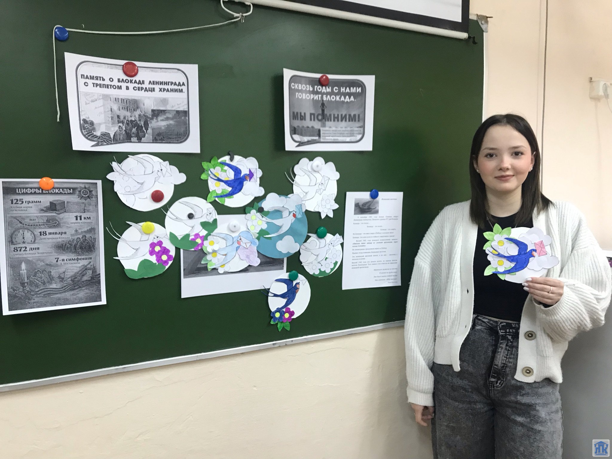 В память о блокадном Ленинграде и его героических защитниках в группе 12-25-МП прошел классный час "Дорогами памяти". Ребята читали стихи, отрывки воспоминаний, сделали открытку "Блокадная ласточка" и оформили стену памяти.
