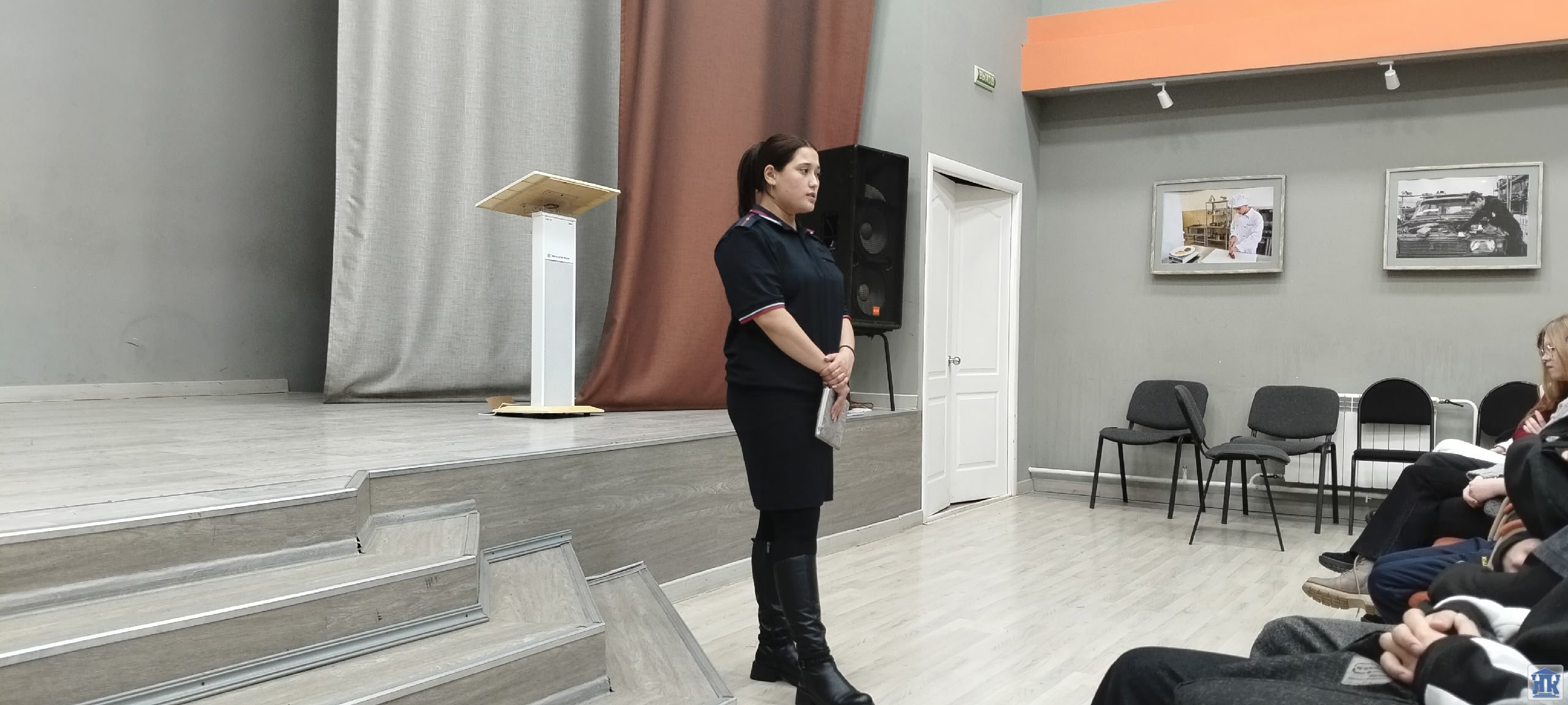 29 января в актовом зале колледжа состоялась профилактическая беседа инспектора ОДН Долгополовой Л.А. со студентами 1 курса.