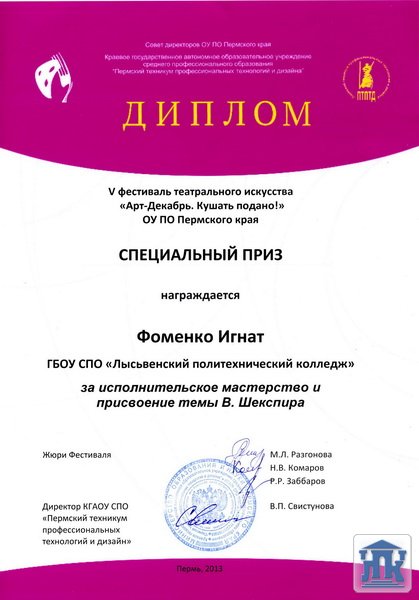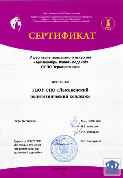 Министерство образования и науки Пермского края"Лысьвенский политехнический колледж" |