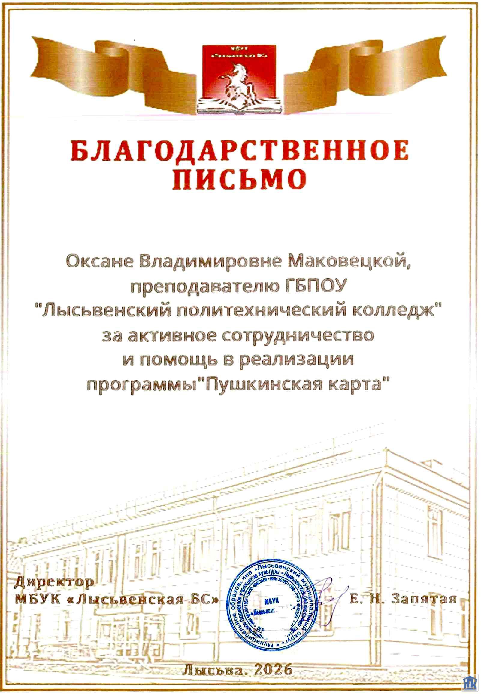 Благодарим Лысьвенскую городскую библиотеку за такую возможность.