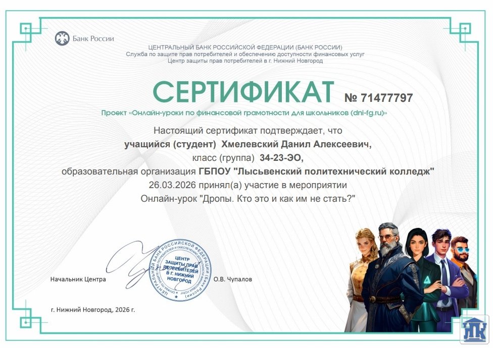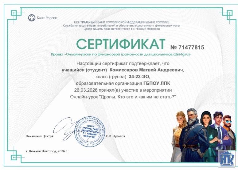 Студенты колледжа приняли участие в онлайн-уроке «Дропы: кто это и как им не стать?» в рамках проекта Банка России «Онлайн-уроки по финансовой грамотности для школьников и студентов».