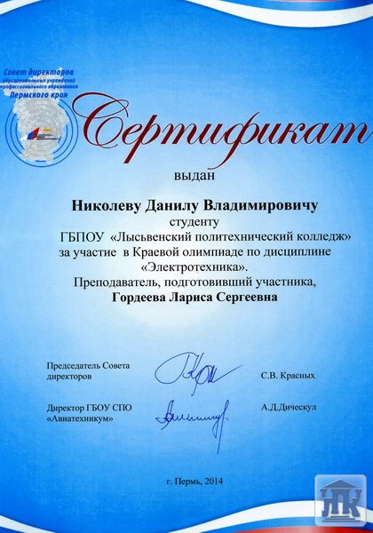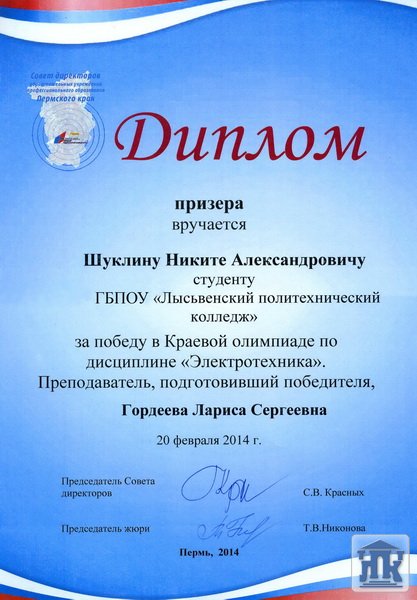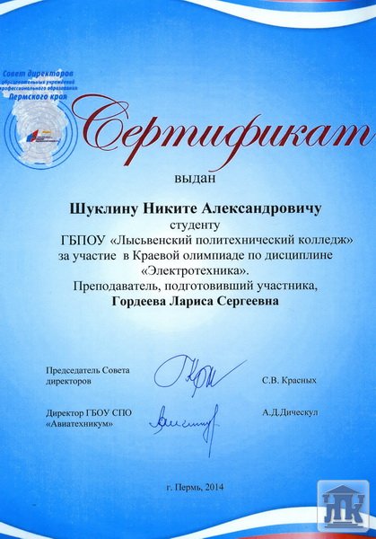 20 февраля на базе ГБОУ СПО «Пермский авиационный техникум» прошла ежегодная краевая олимпиада по электротехнике среди профессиональных образовательных учреждений Пермского края. В этом году колледж представляла большая команда. Воронов Владимир и Тотьмянин Никита были единственными участниками олимпиады из студентов, получающих рабочую профессию!