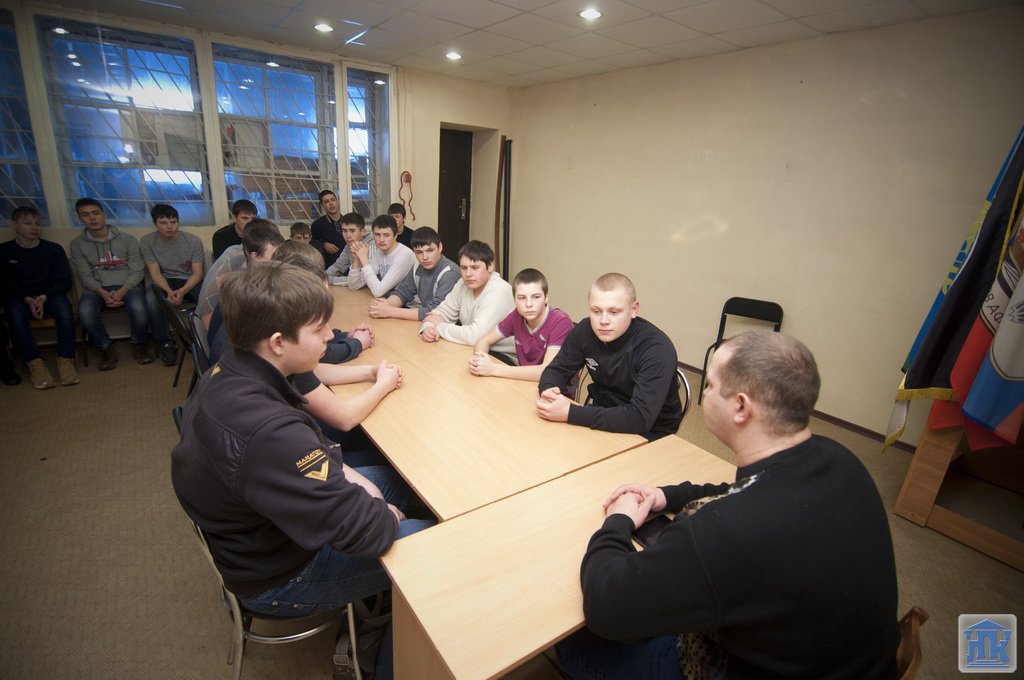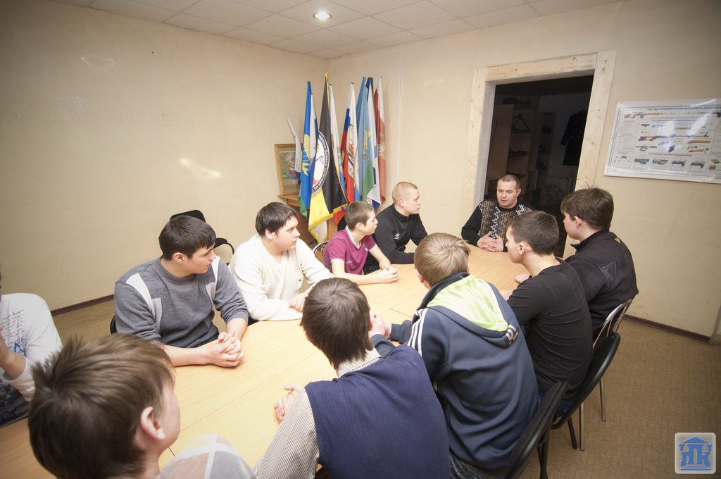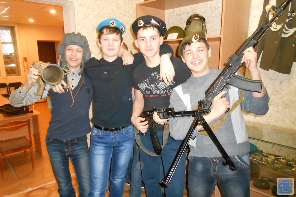 Юноши внимательно слушали рассказы мужчин, которым пришлось воевать, лечиться в госпиталях, хоронить товарищей, будучи совсем молодыми. Хозяева просто и ненавязчиво рассказывали о своих армейских буднях, убеждали в необходимости хорошей физической подготовки для парней. А потом в маленьком музее студенты с интересом примеряли на себя форму и каски, держали в руках оружие.
