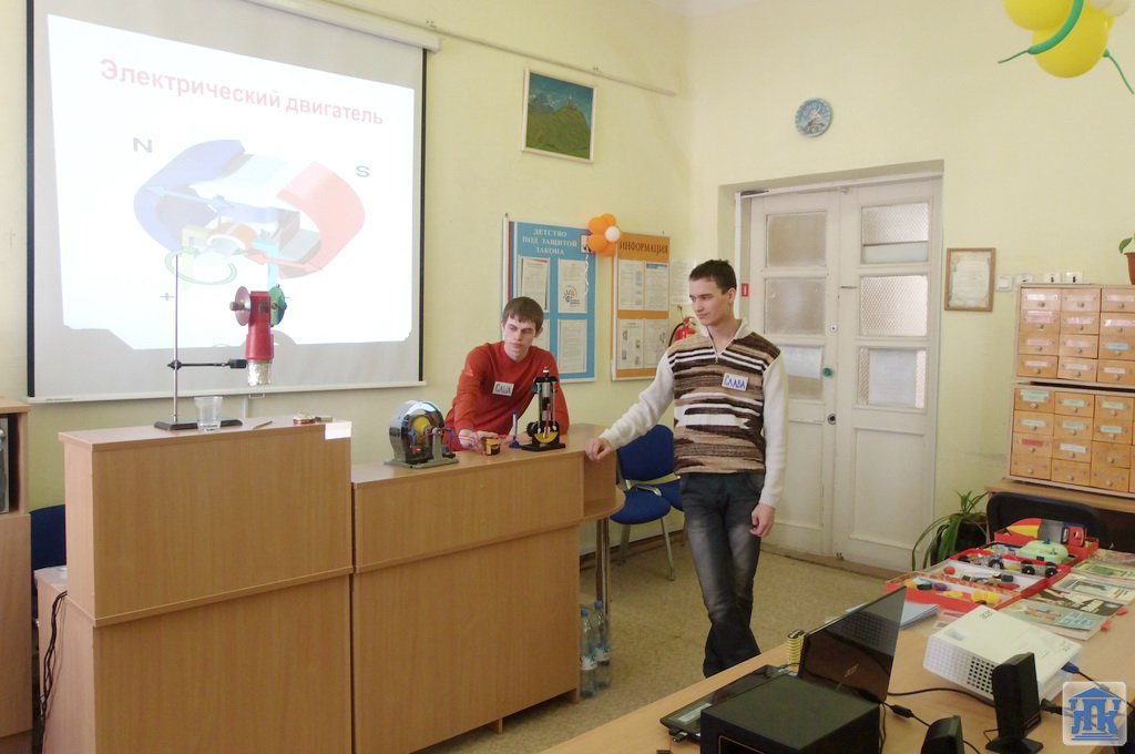 Вячеслав Васёв и Александр Гречухин, студенты группы 31-АВ, специально для проекта разработали движущиеся модели, которые могли бы собрать учащиеся младших классов за 15 минут! На занятии лаборатории «Движок» они объяснили и продемонстрировали ребятам устройство и принцип работы различных двигателей.