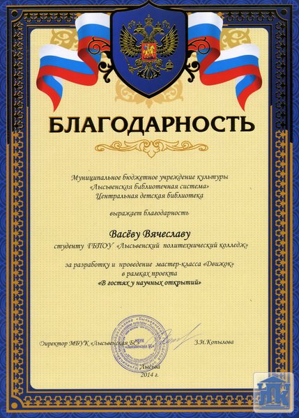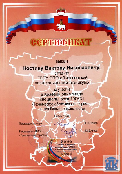 Пермский край, г. Лысьва, ул. Мира, д. 45, тел.: 8(34249) 3-79-70, доб. 205, 8(34249) 3-79-50, доб. 215, e-mail: gbpou-lpk@lpk.permkrai.ru