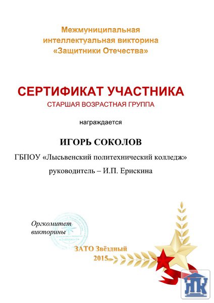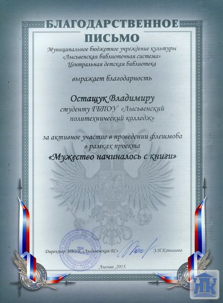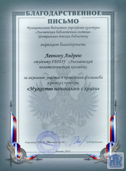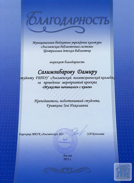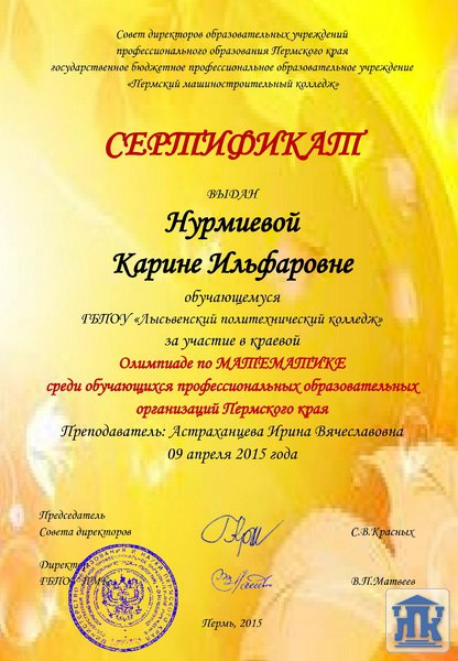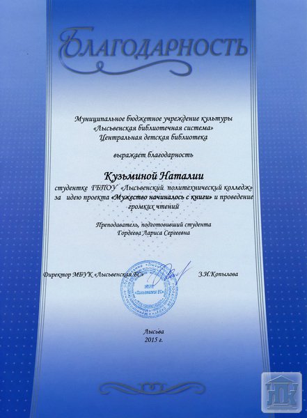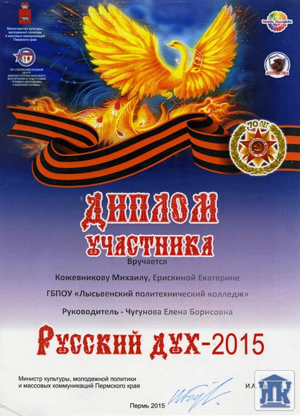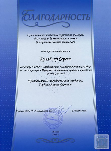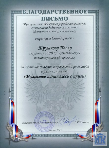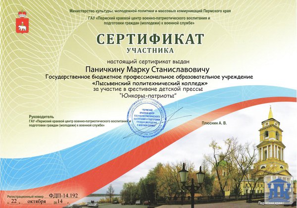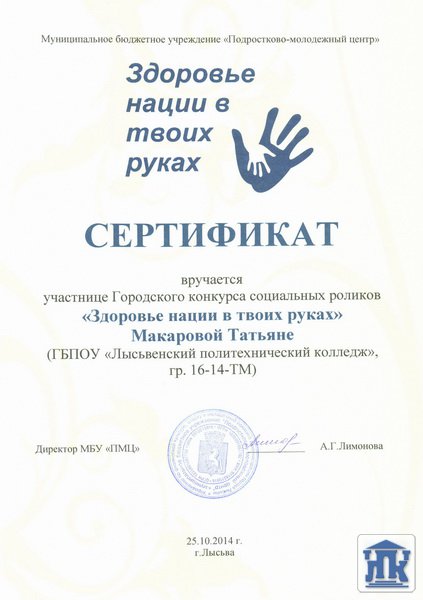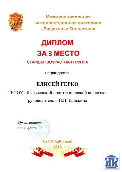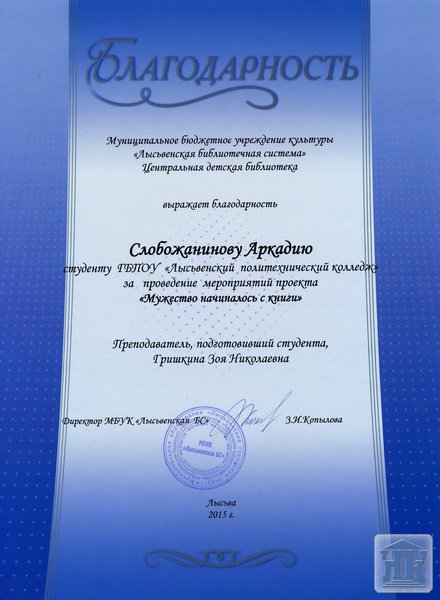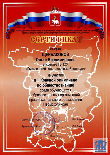 Пермский край, г. Лысьва, ул. Мира, д. 45, тел.: 8(34249) 3-79-70, доб. 205, 8(34249) 3-79-50, доб. 215, e-mail: gbpou-lpk@lpk.permkrai.ru