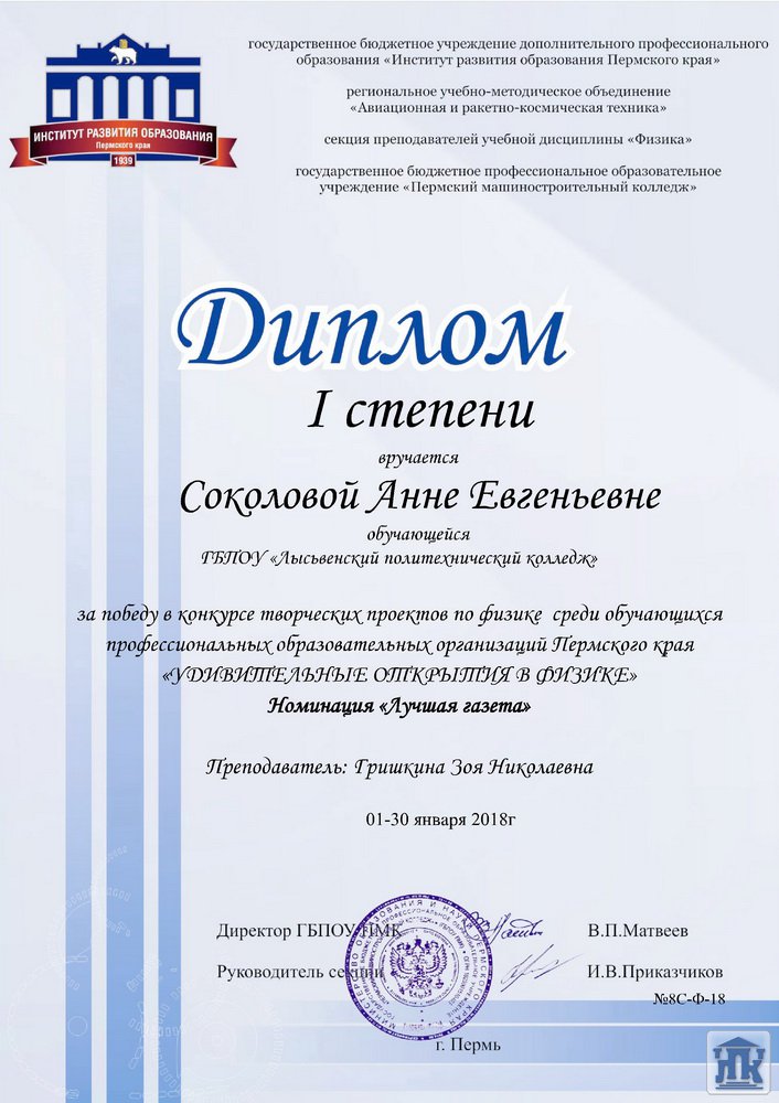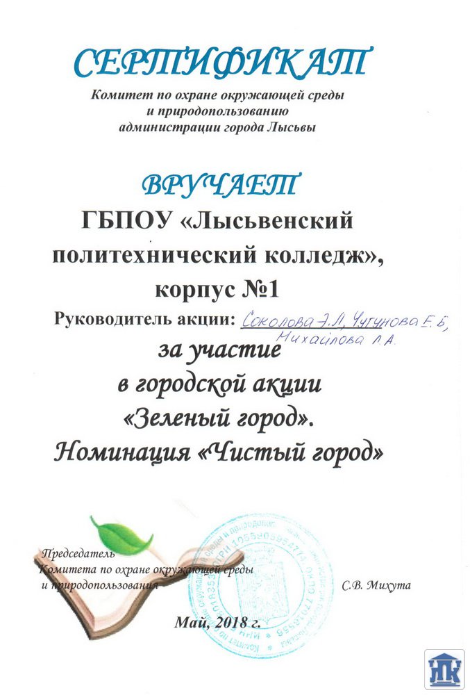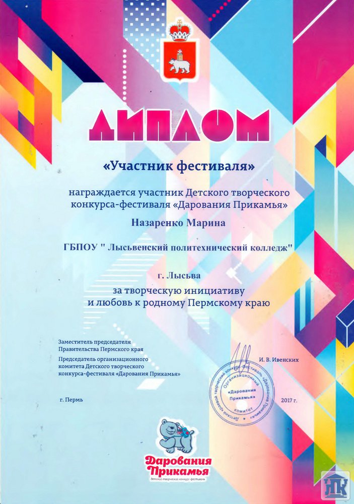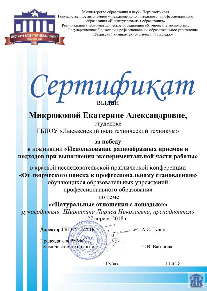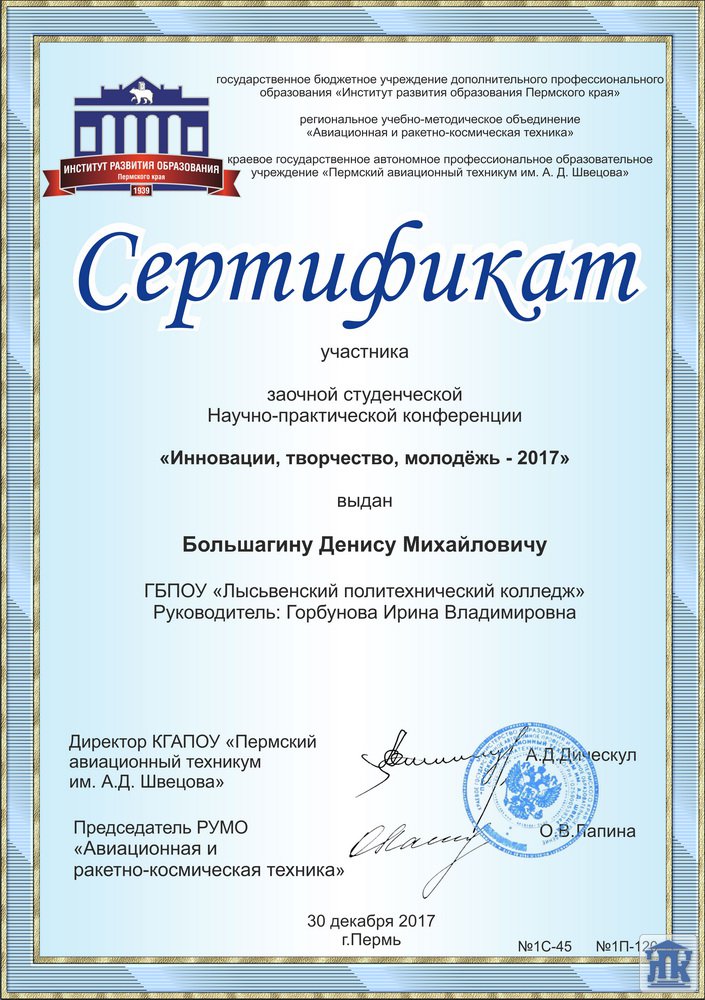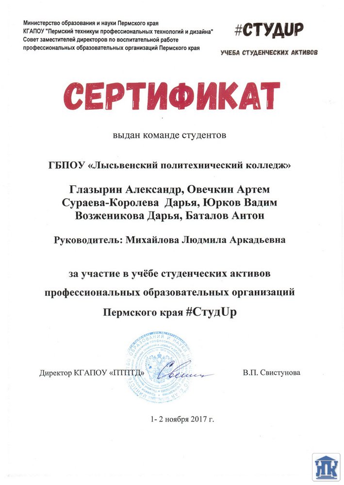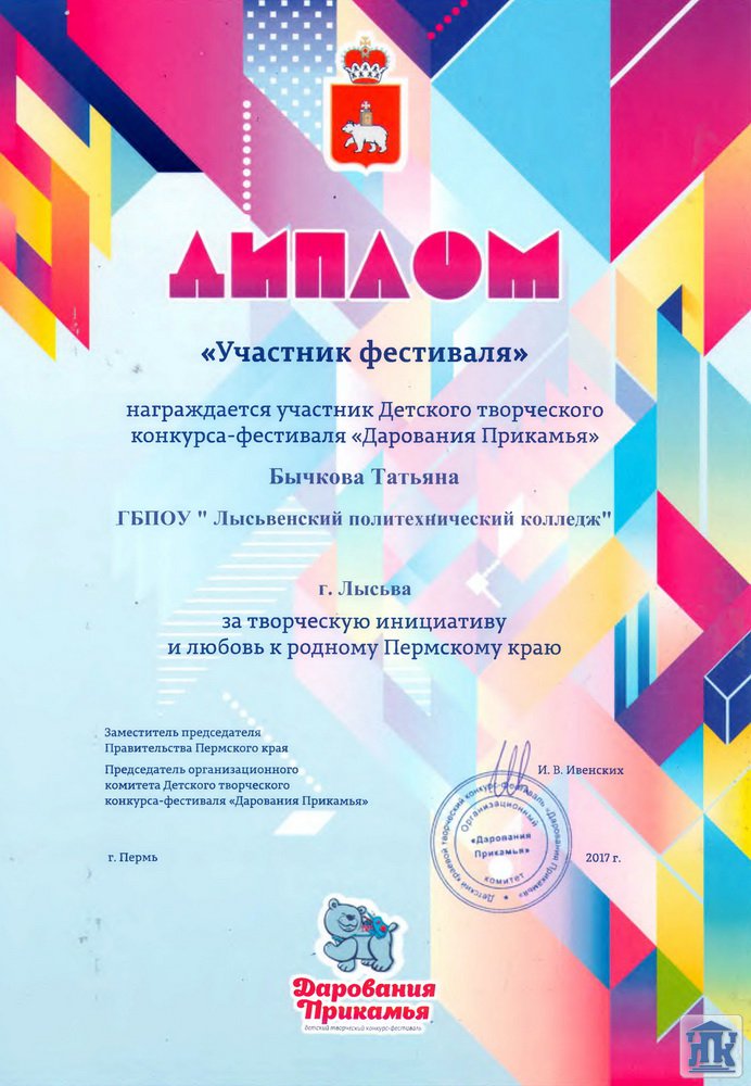 Пермский край, г. Лысьва, ул. Мира, д. 45, тел.: 8(34249) 3-79-70, доб. 205, 8(34249) 3-79-50, доб. 215, e-mail: gbpou-lpk@lpk.permkrai.ru