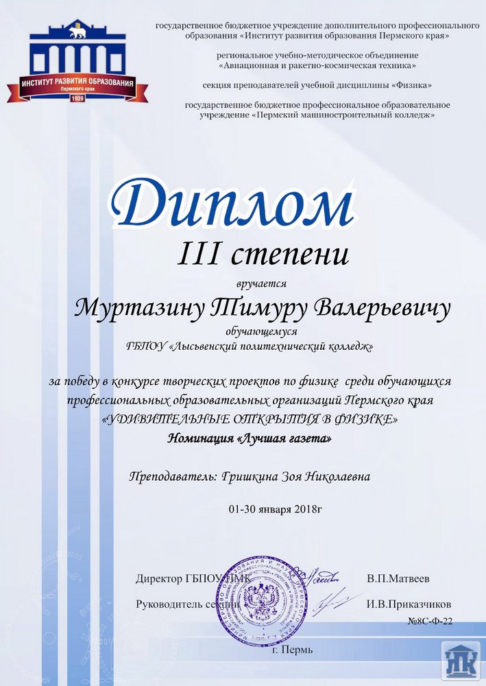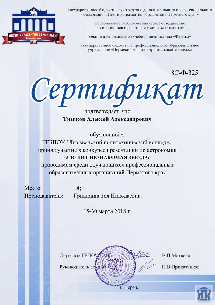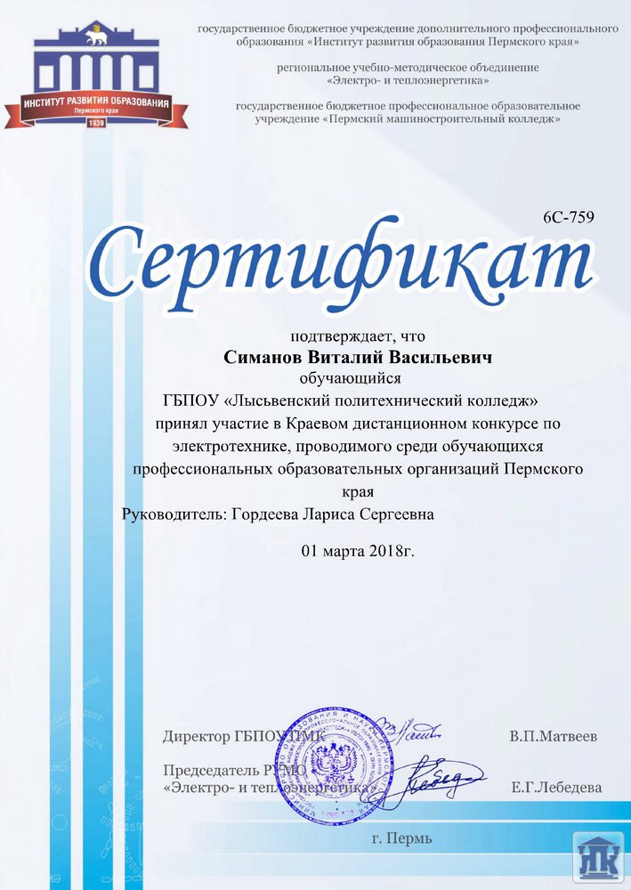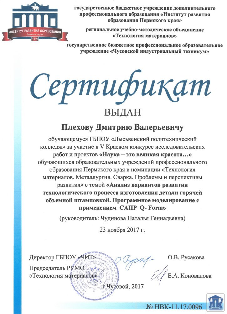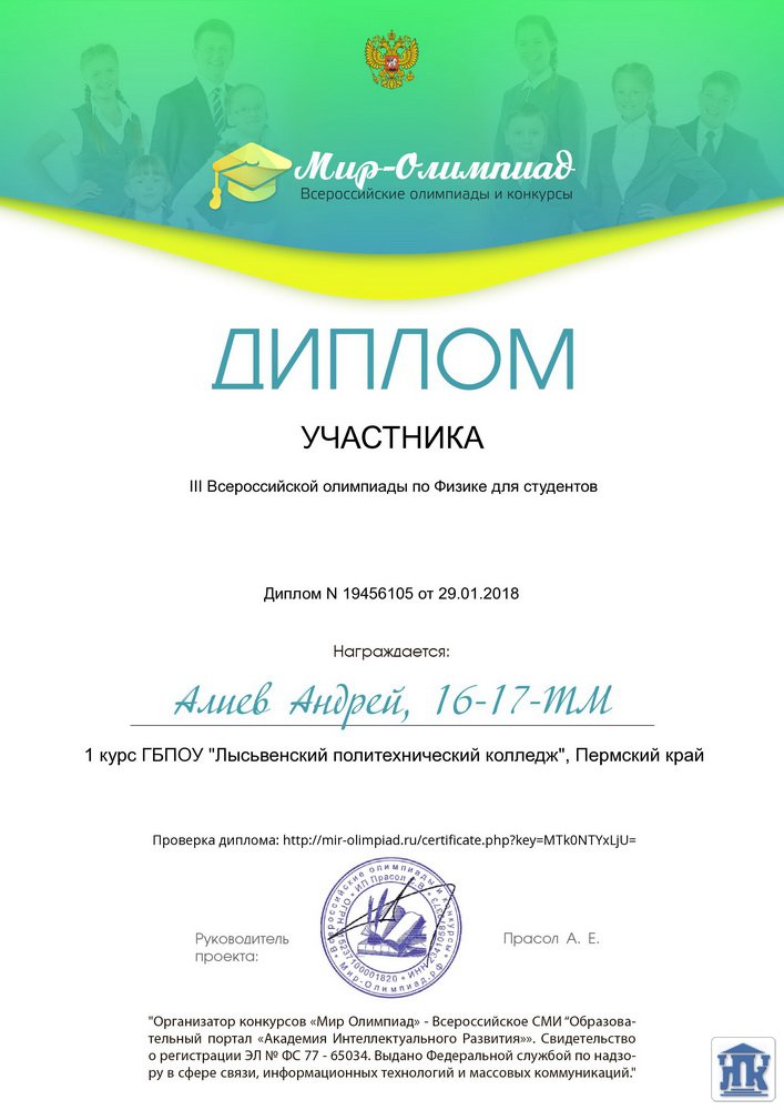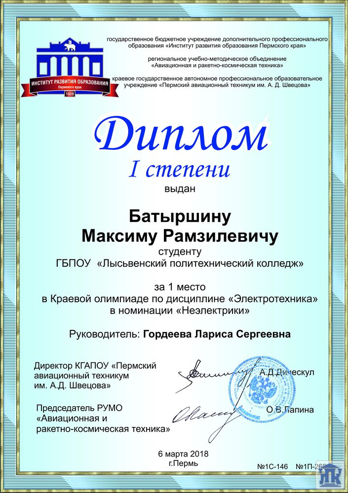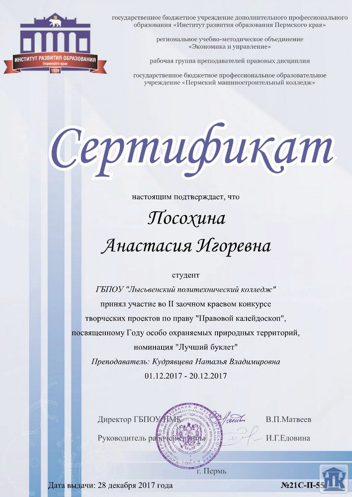 Пермский край, г. Лысьва, ул. Мира, д. 45, тел.: 8(34249) 3-79-70, доб. 205, 8(34249) 3-79-50, доб. 215, e-mail: gbpou-lpk@lpk.permkrai.ru