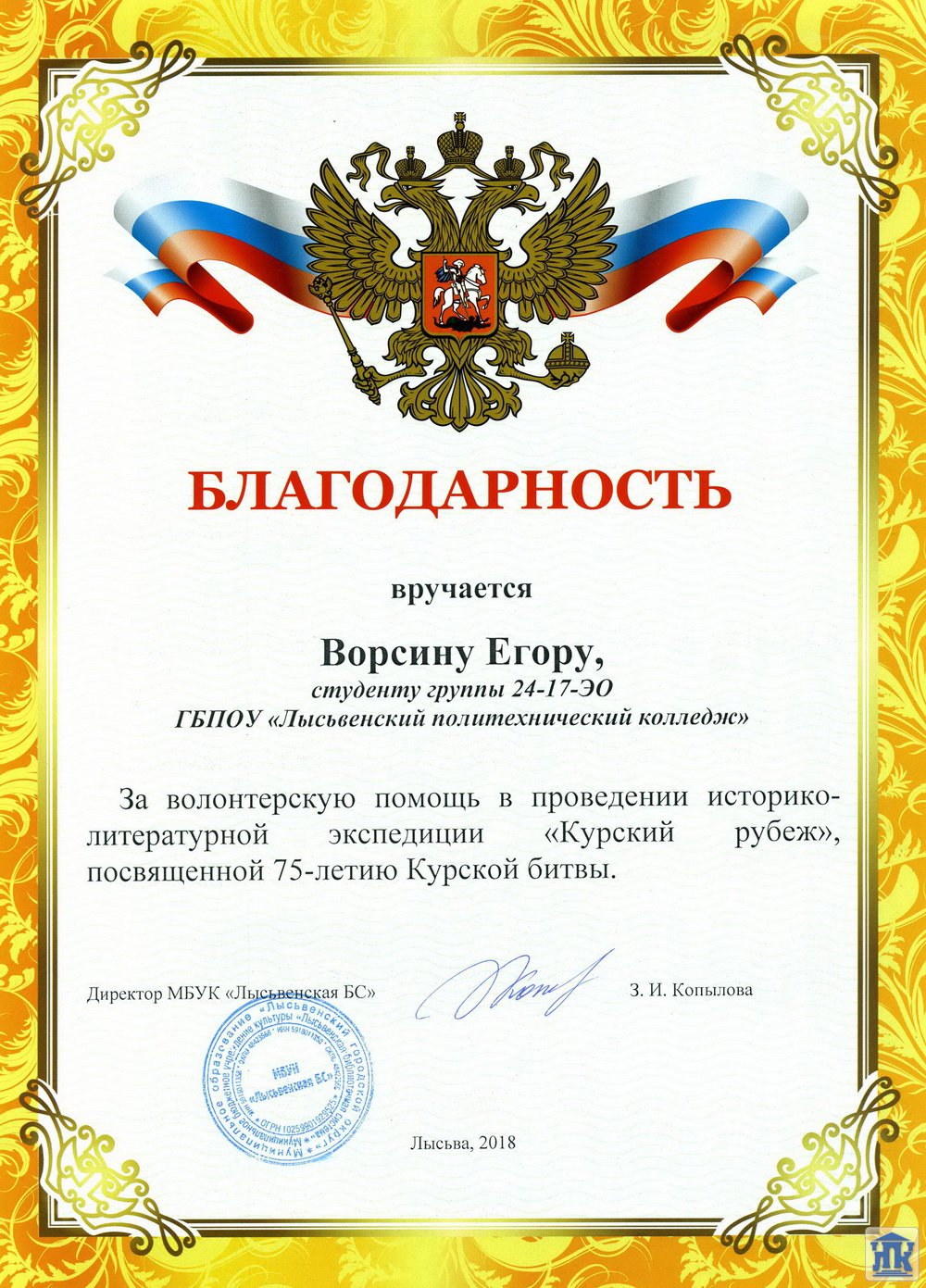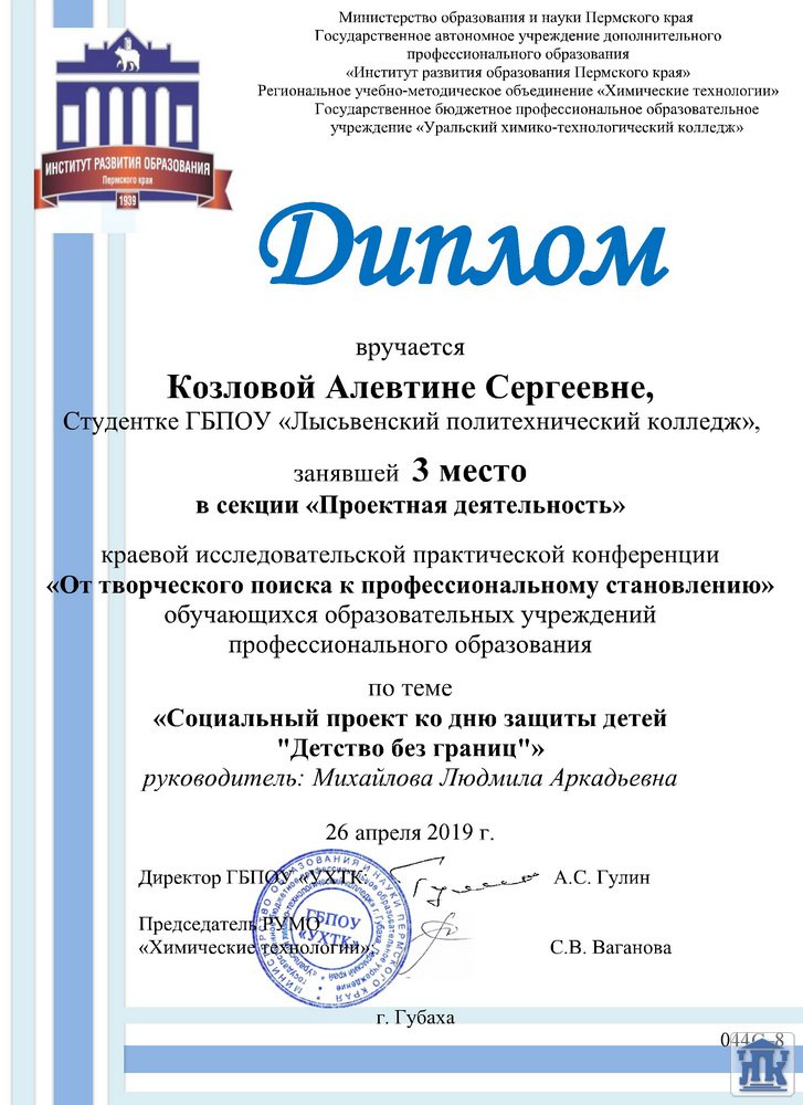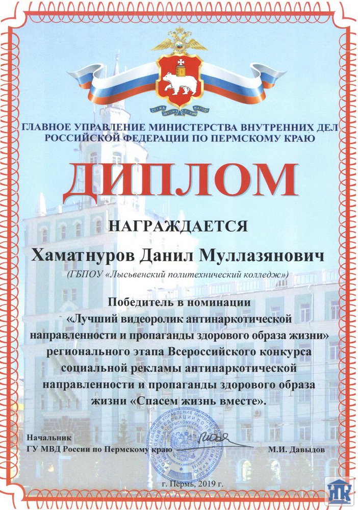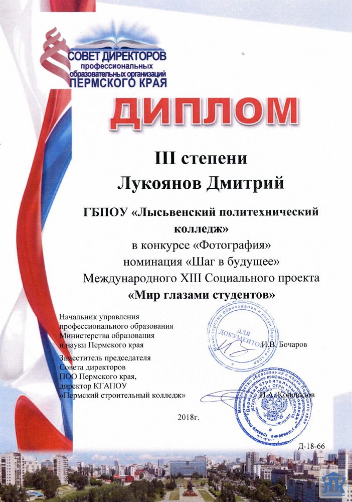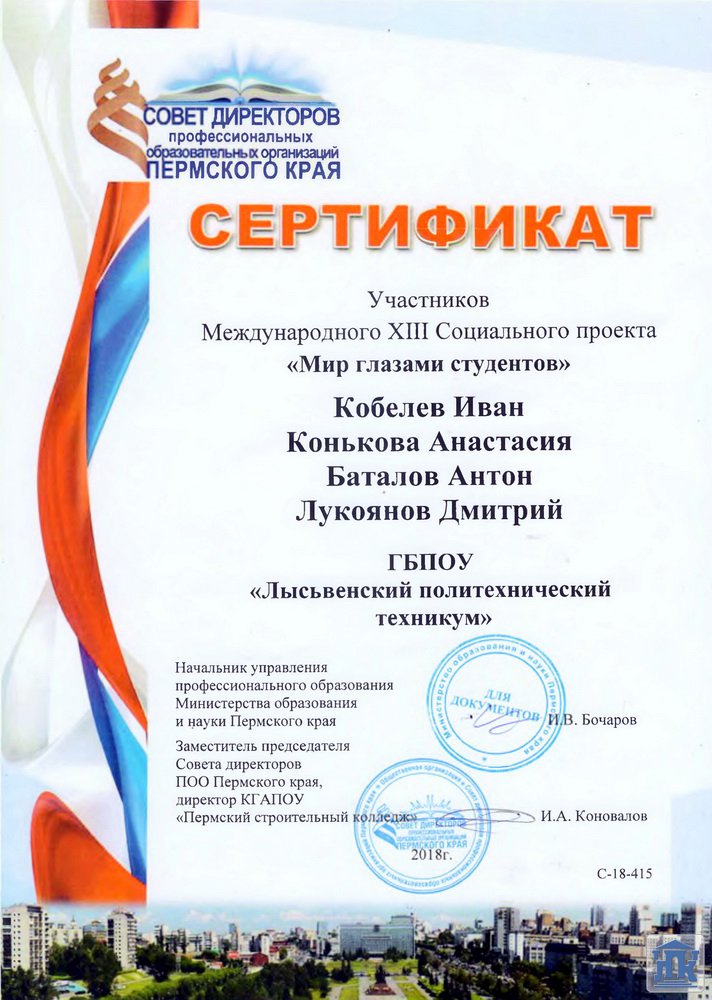 Пермский край, г. Лысьва, ул. Мира, д. 45, тел.: 8(34249) 3-79-70, доб. 205, 8(34249) 3-79-50, доб. 215, e-mail: gbpou-lpk@lpk.permkrai.ru