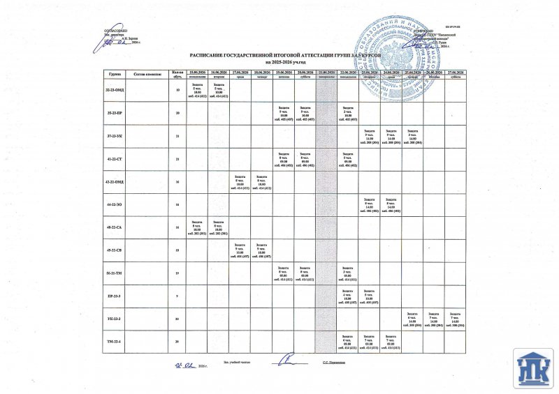 » Расписание государственной итоговой аттестации