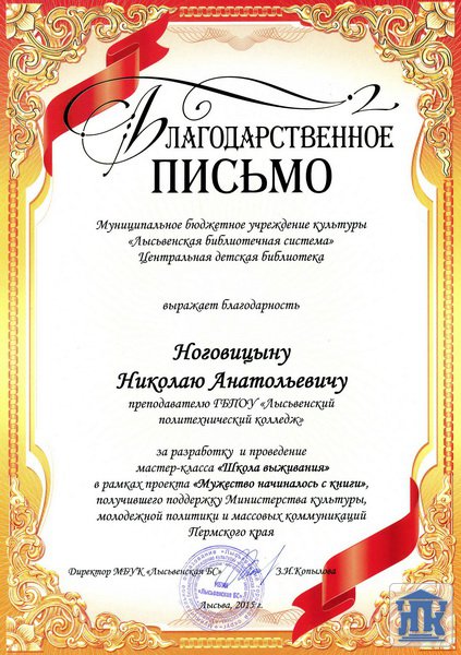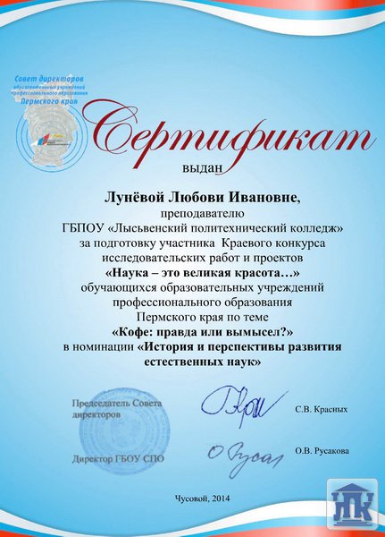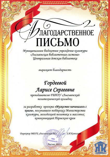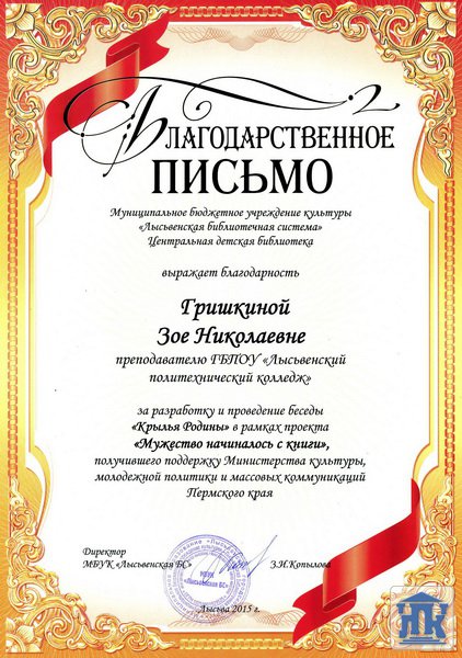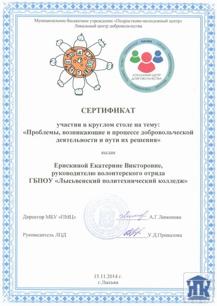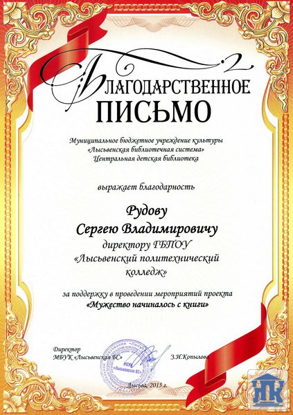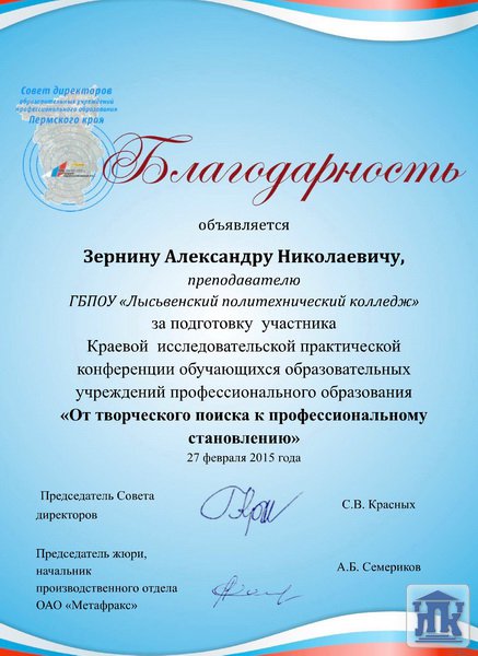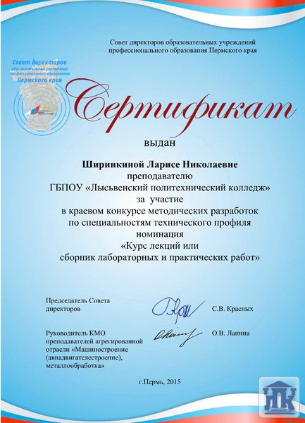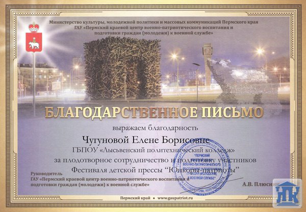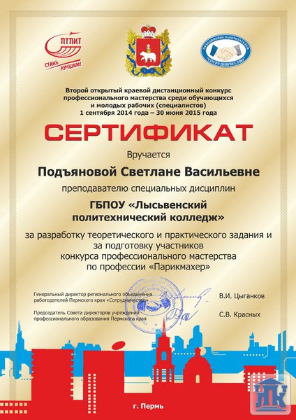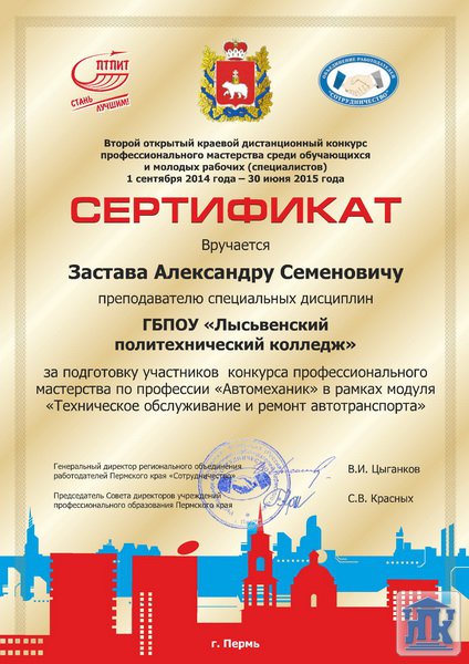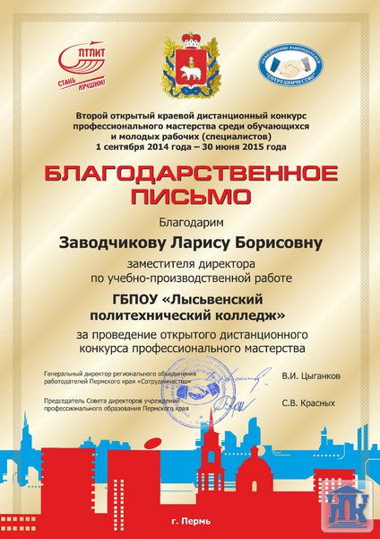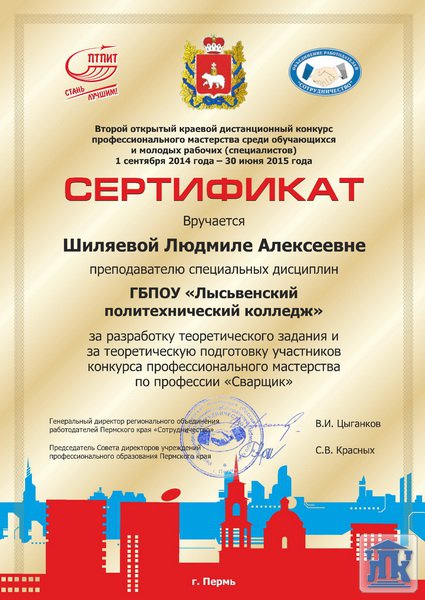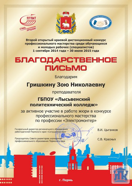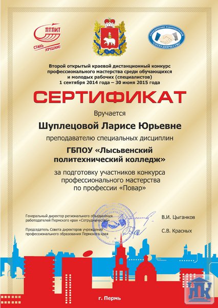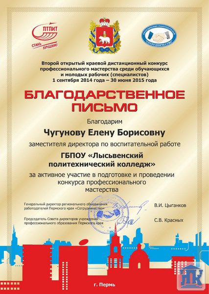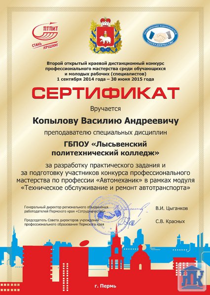 Пермский край, г. Лысьва, ул. Мира, д. 45, тел.: 8(34249) 3-79-70, доб. 205, 8(34249) 3-79-50, доб. 215, e-mail: gbpou-lpk@lpk.permkrai.ru